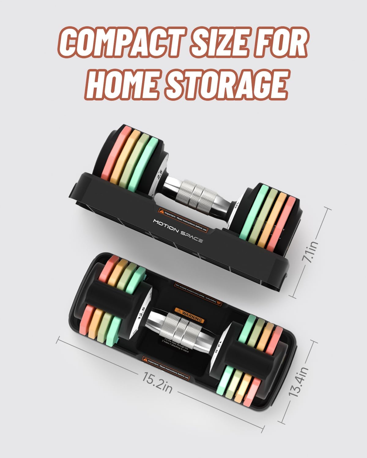 Adjustable Dumbbells Set 12.5LB/22.5LB Pair, 1-Sec Fast Adjustable 5 Weights by Turning Handle, Premium Comfort Non-slip Metal Dumbbells with Tray, Compact Size for Full Body Home Workout