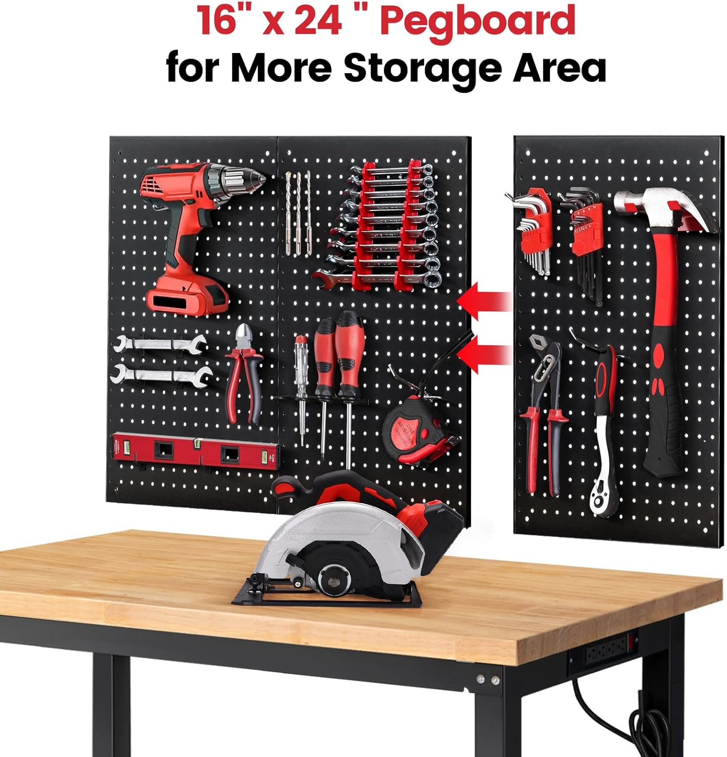 Heavy Duty Rubberwood Tabletop: 1.2″ solid rubberwood tabletop, with a weight capacity of 3000LBS, suits for heavy tools and materials. Comes with an safety varnish to protect the wood,workbench last longer.