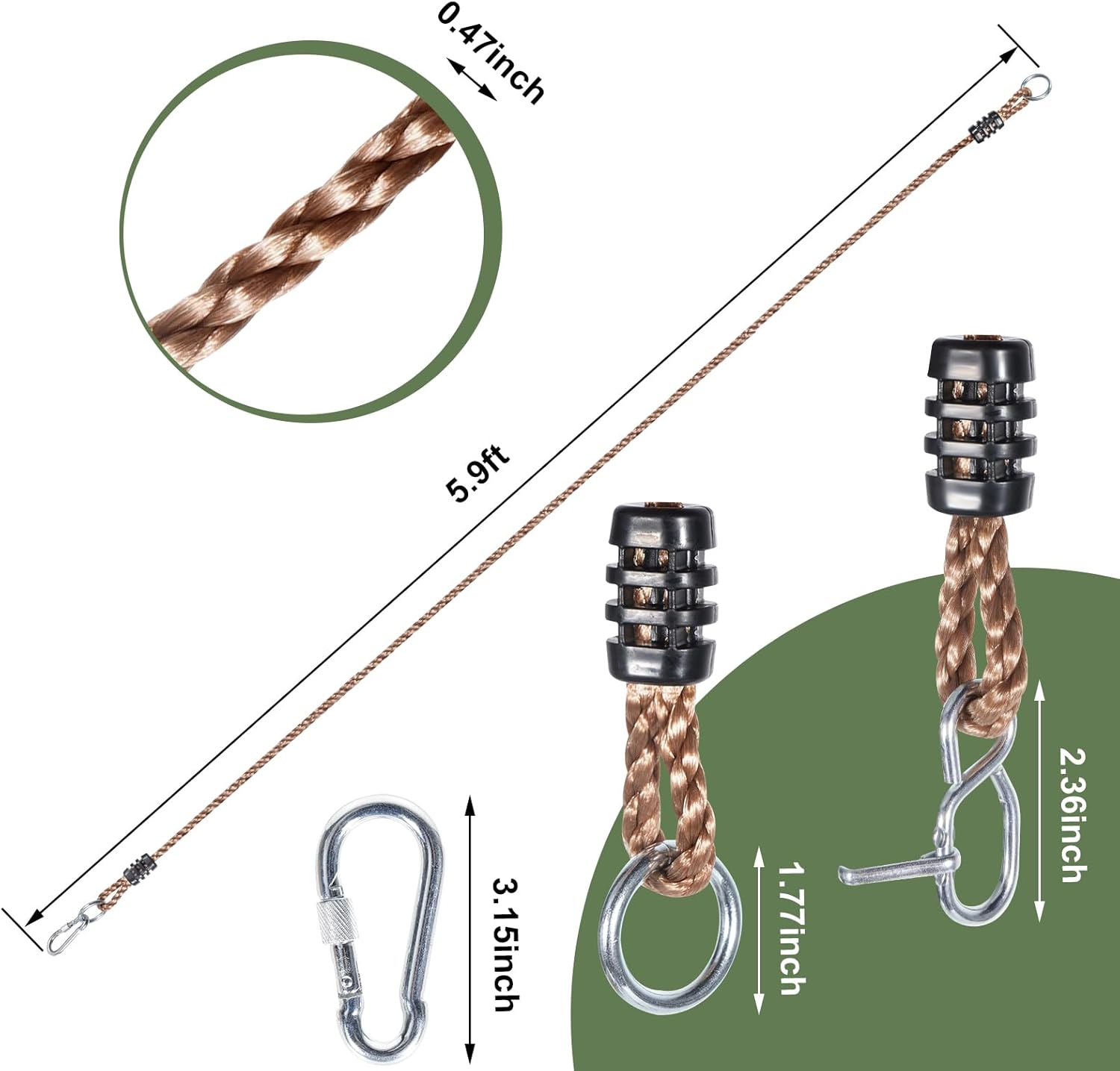Adjustable length: This swing for tree system comes with two 5.9-foot swing extension ropes, making it easy to customize the ropes of swings, hammocks, or amusement equipment to the perfect height. The complete tree swing suspension kit includes all necessary hardware for quick installation, providing excellent comfort and complete peace of mind during use