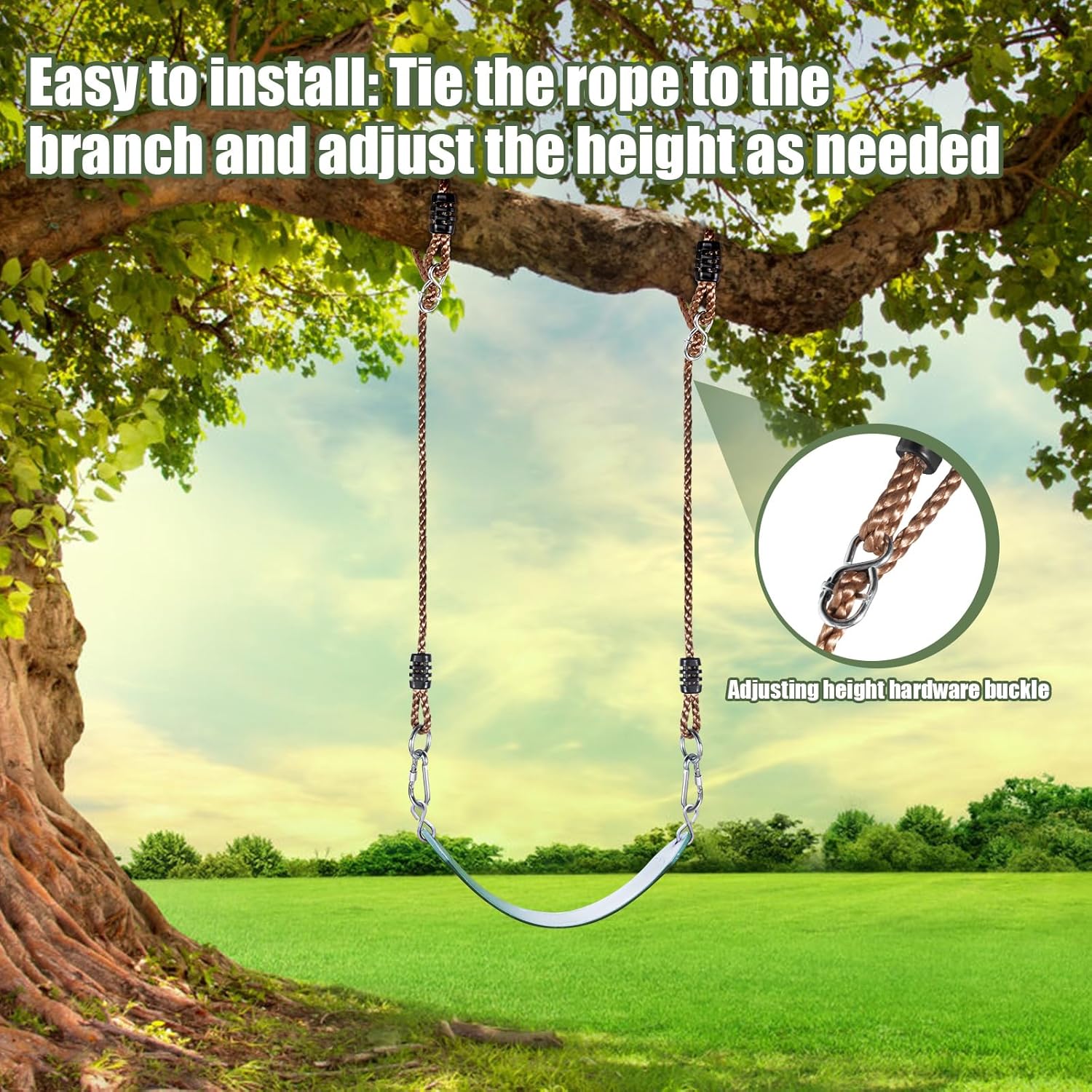 Durable & Sturdy: Our tree swing rope set includes 2 heavy-duty adjustable swing extension ropes crafted from premium polyethylene. Engineered for outdoor rope swing use, they deliver unmatched safety and reliability. Each high-strength rope can support up to 400 pounds of weight, providing you with a worry free swing experience
