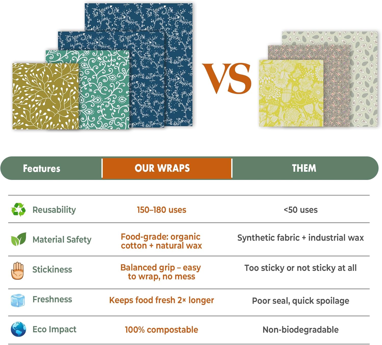 Each wrap replaces 3–5 rolls of plastic wrap — a smarter, greener choice for your kitchen.