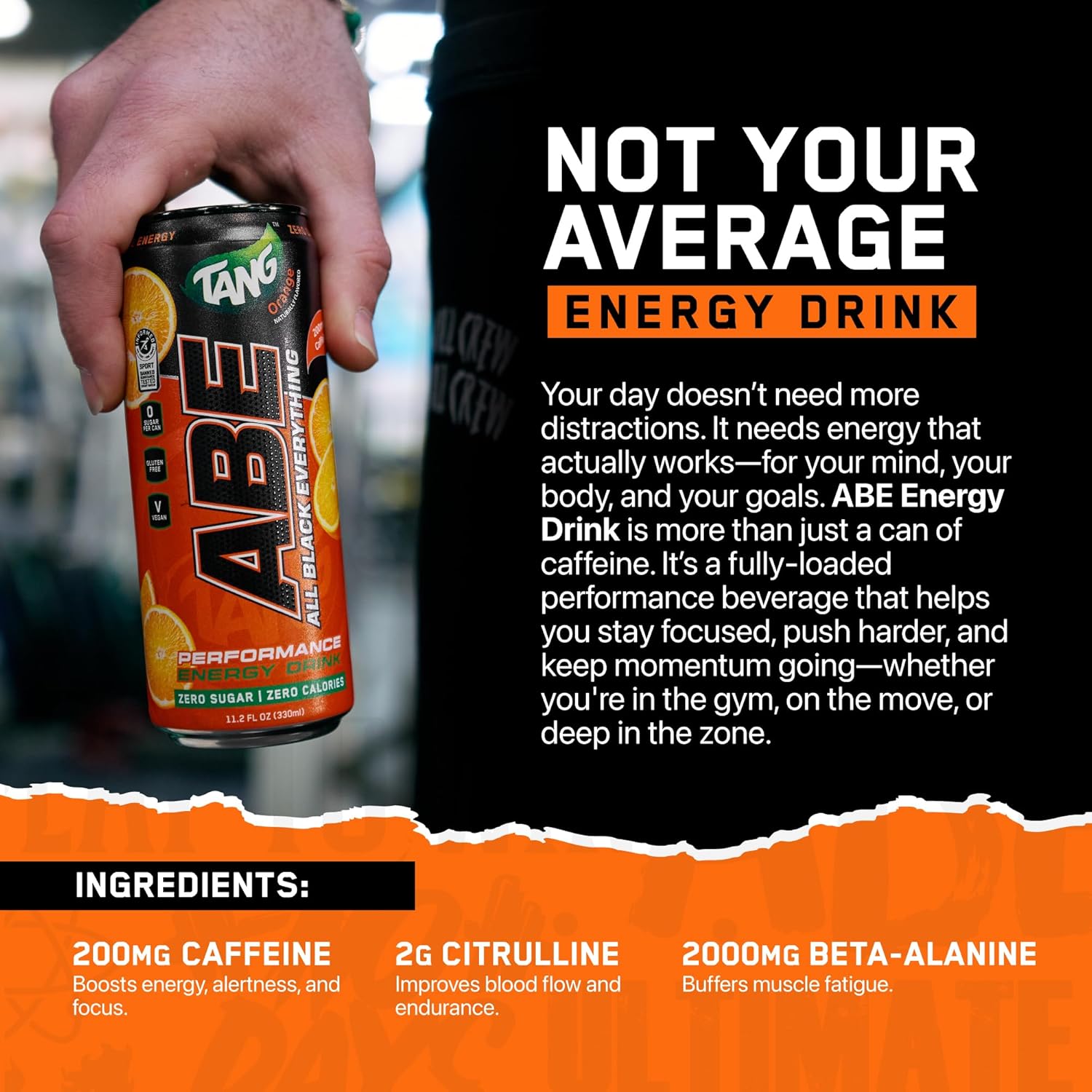 All Black Everything Sugar Free Energy Drink | TANG Orange | 0 Calories | 12 Pack | 200mg Natural Caffeine | Pre-Workout Sport Drink for Men and Women