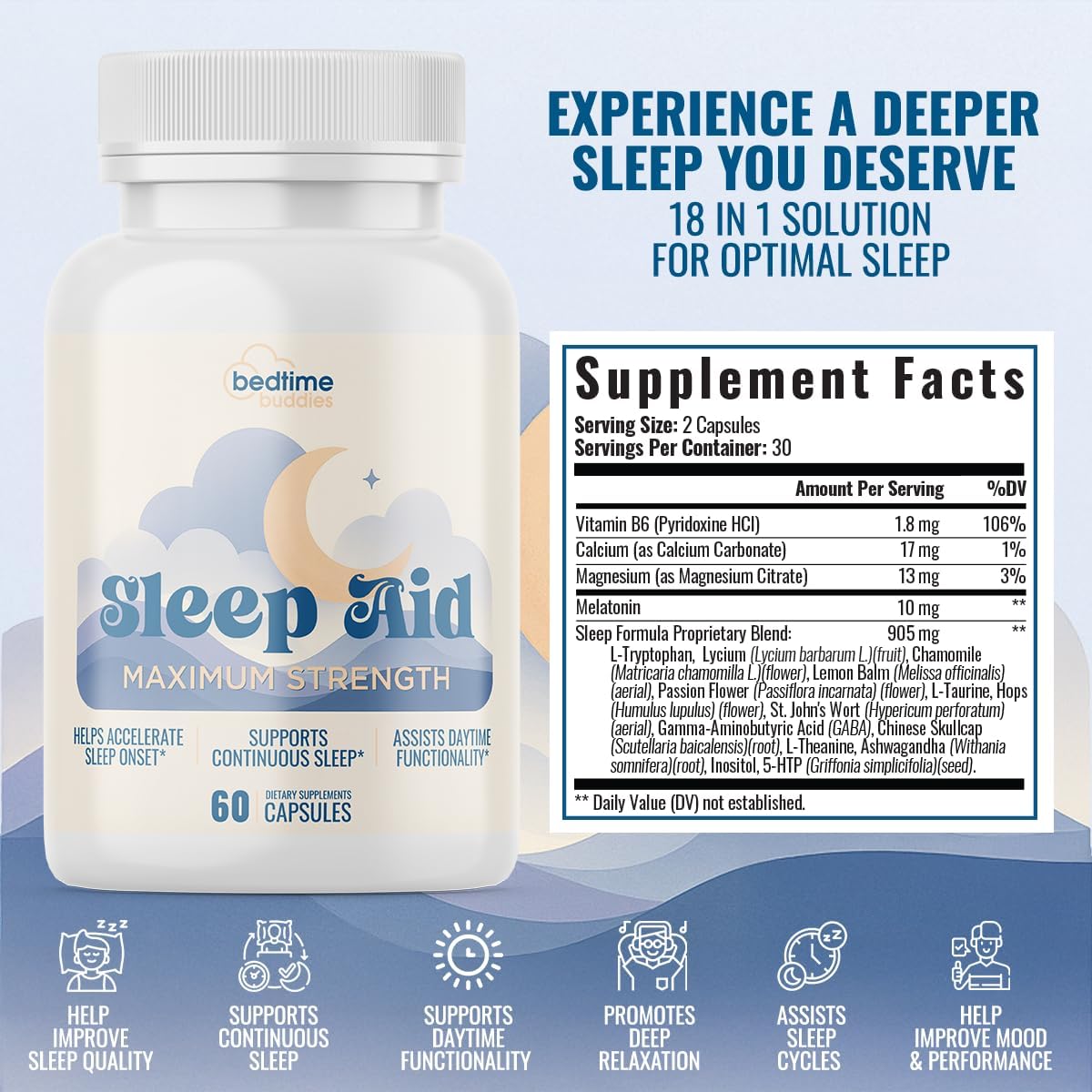 Safety Disclaimer: Consult with your healthcare professional before using this sleep aid, especially if you have any medical conditions, are pregnant, breastfeeding, or taking other medications. This product is a dietary supplement and is not intended to diagnose, treat, cure, or prevent any disease.