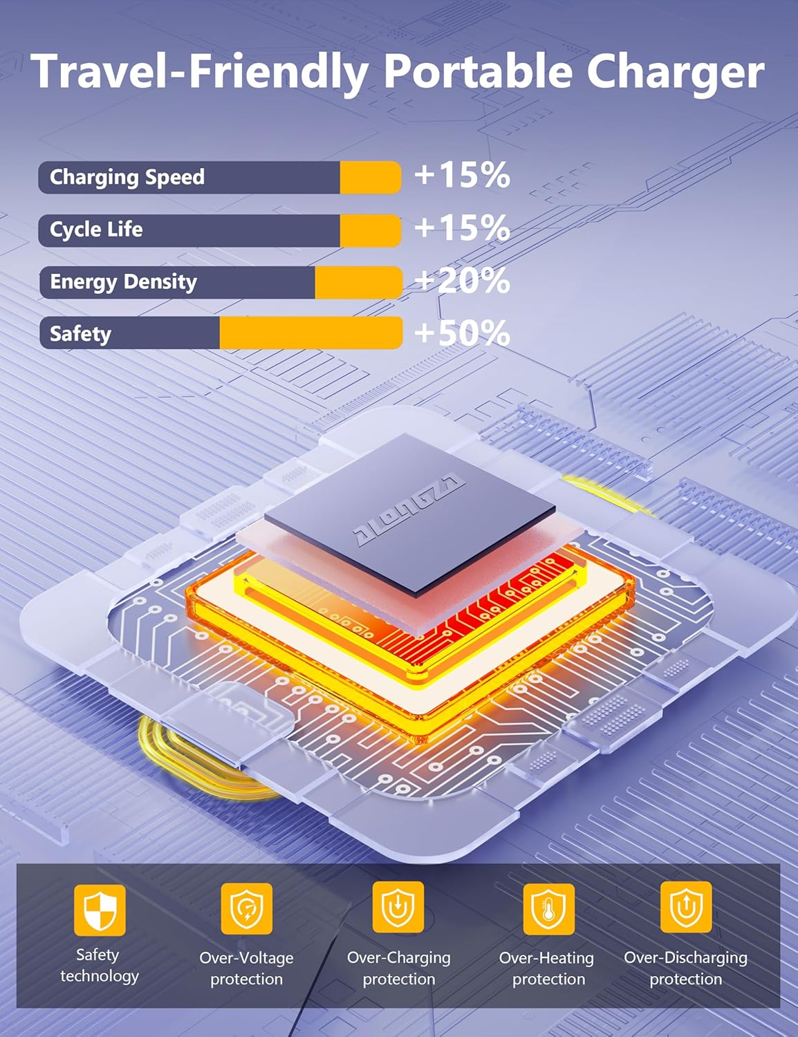 Safety & Travel-Friendly Portable Charger: Built with a premium battery and a rigorously tested damage-resistant cable, the phone battery bank is designed for long-lasting durability. Its intelligent protection system prevents over-current, overheating, and overcharging. It’s safe, reliable, and airline-compliant.