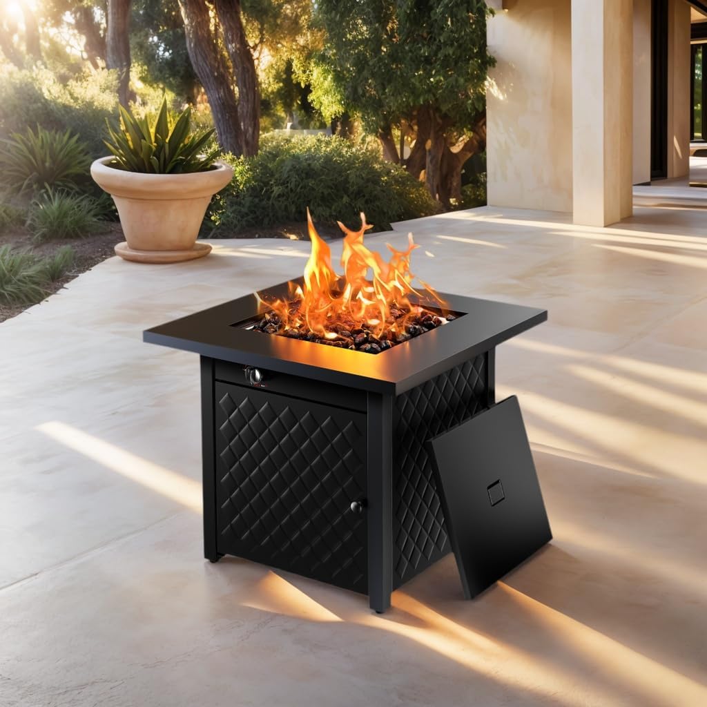 Ample Tabletop Space: The gas fire pit measures 28″ x 28″ x 26″, and there’s plenty of room on the table top firepit for drinks, food, and snacks for a party or romantic outdoor gathering. Your guests won’t have to hold their drinks all night long – host a patio party where they can relax, sit back, and chat by the warm fire pit or outdoor fireplace!