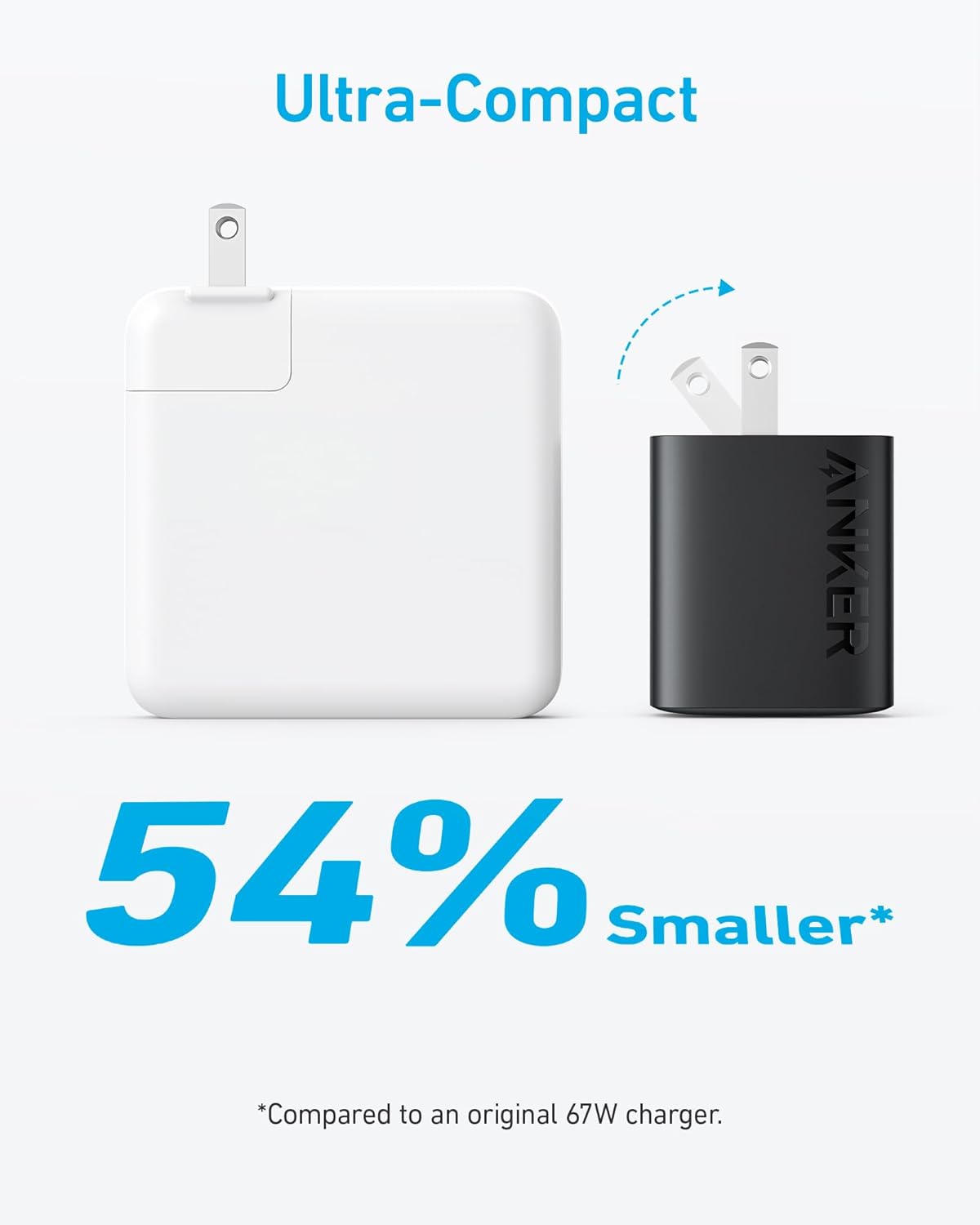 Anker 315 Charger is 54% smaller than a standard charger and offers exceptional power in a remarkably compact design.
