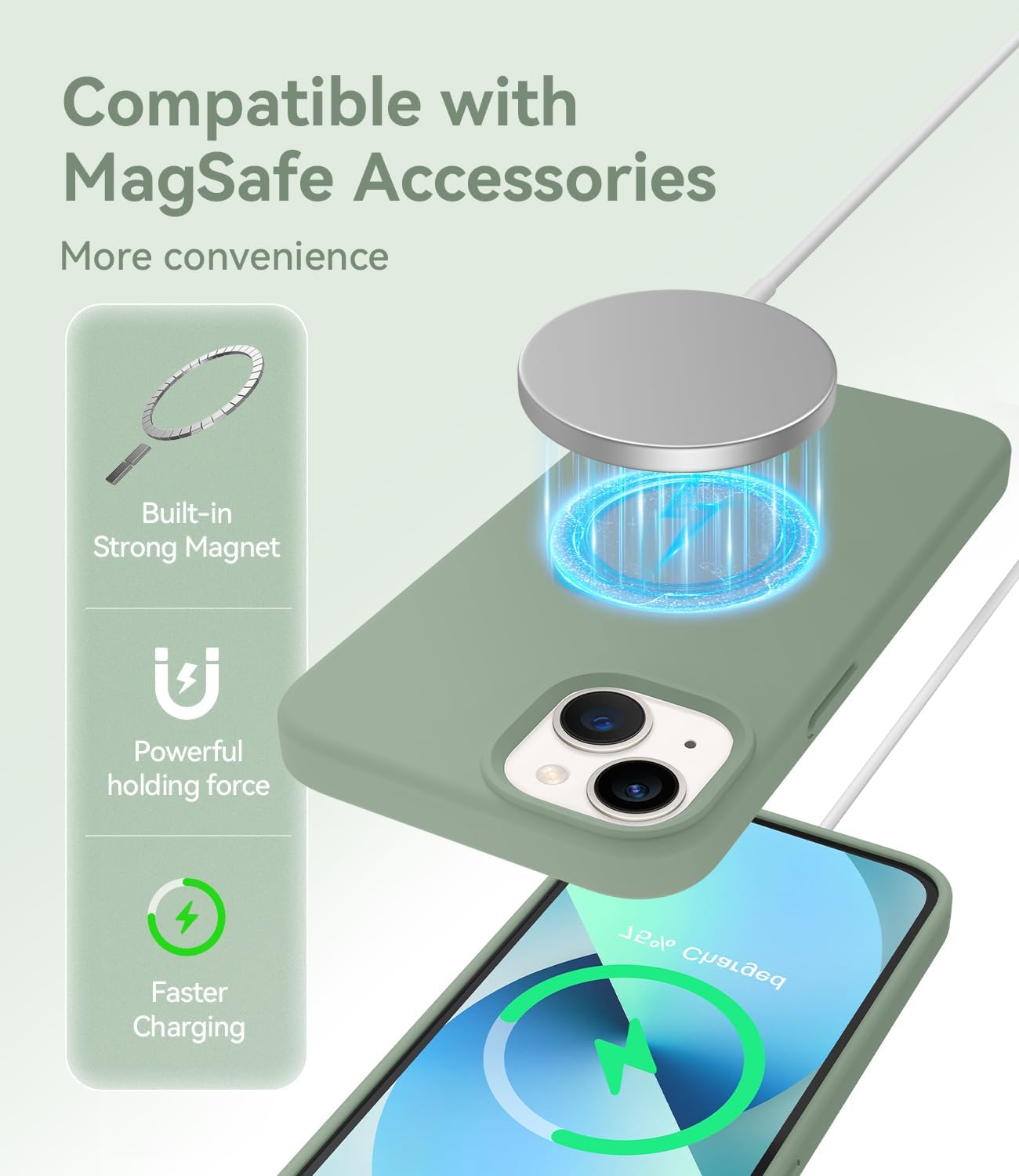 AOTESIER Magnetic for iPhone 13 Case, [Compatible with MagSafe][Military Shockproof Protection] Food Grade Silicone Case with Soft Anti-Scratch Microfiber Lining, 6.1 inch, Sage Green