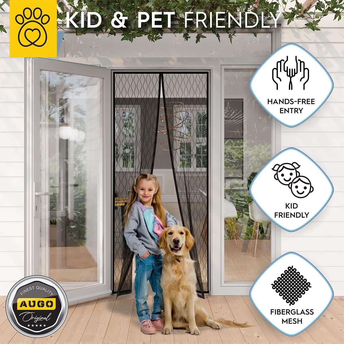 AUGO Magnetic Fiberglass Design Screen Door – Self Sealing, Heavy Duty, Hands Free Mesh Partition Keeps Bugs Out – Door Screen Magnetic Closure – Patent Pending Keep Open Feature – 38 Inch x 83 Inch