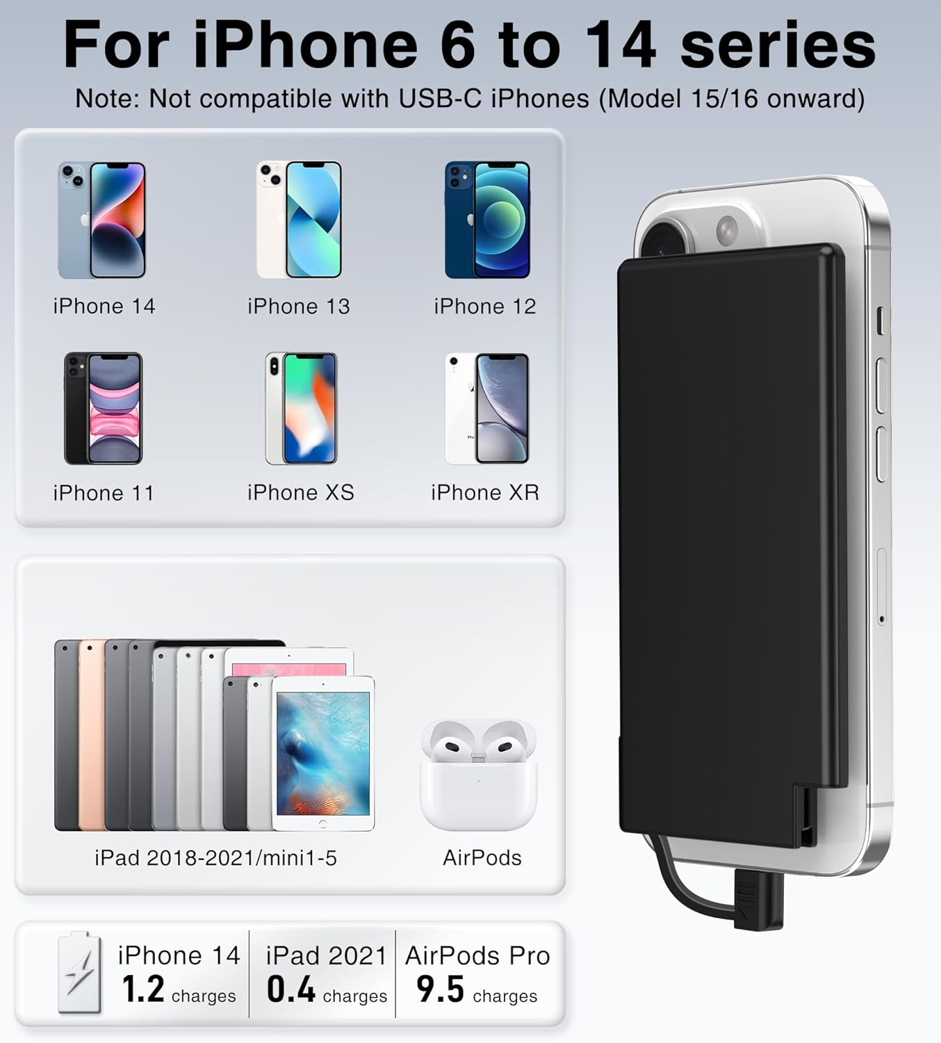 [ Built-in Lightning Cable] – Portable chargers for multiple devices, No need to carry a separate charging cable for iPhone iPhone 14, 13, 12, 11, X, 8 & Older Models(Not for iPhone 15 16 Series and Android Phones)