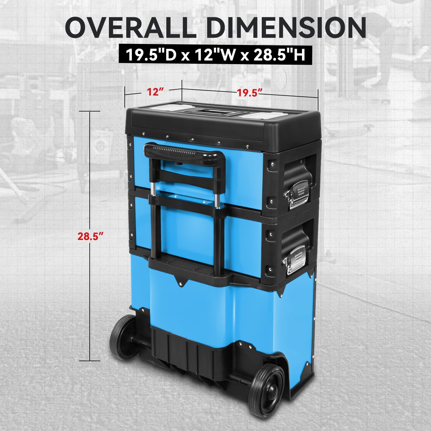 Auto Dynasty 3-Tier Stackable Tool Box, 19.5 Inch 3-in-1 Rolling Tool Box with Wheels, Portable Steel and Plastic Rolling Upright Trolley Toolbox Organizer for Garage Workshop, 3-Piece Set, Blue