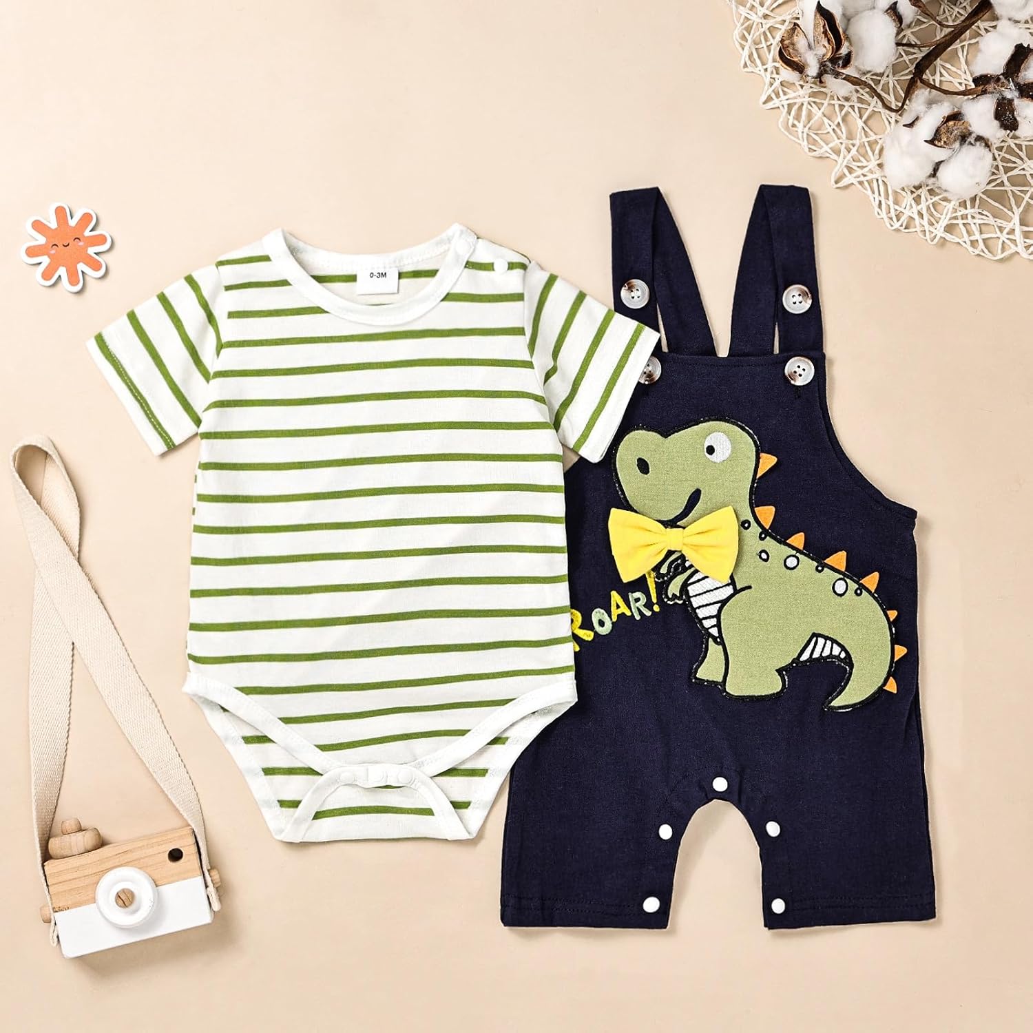 Baby Boy Clothes Newborn Outfits Stripe Romper Infant Cartoon Overall Adjustable Suspender Pants Set 0-18 Months