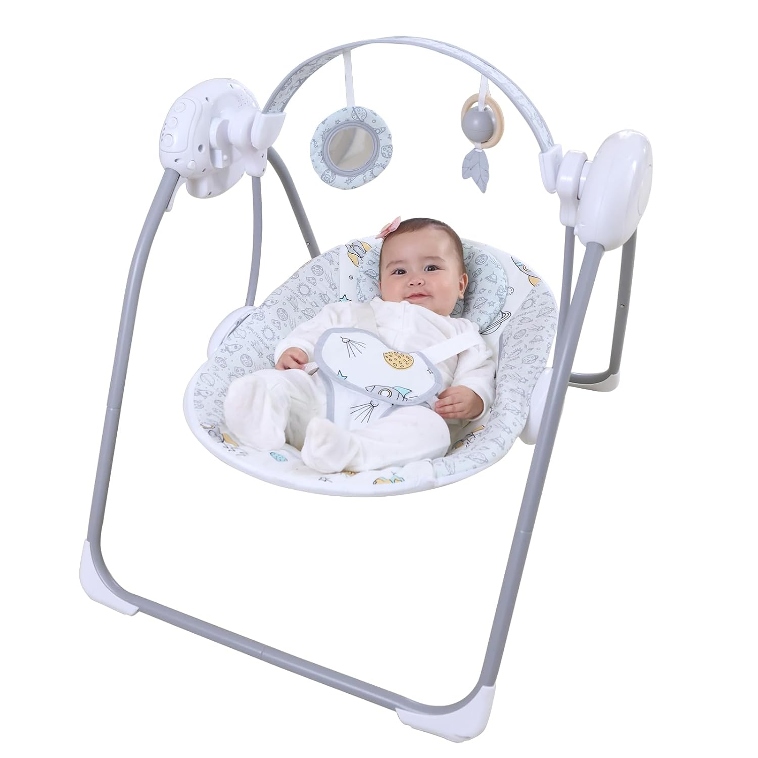 Comfort baby with Music and Swinging :Auto-adjusts swing radius based on baby’s weight;Using volume control soothing melodies help keep baby calm as they grow from newborn to 9 months.
