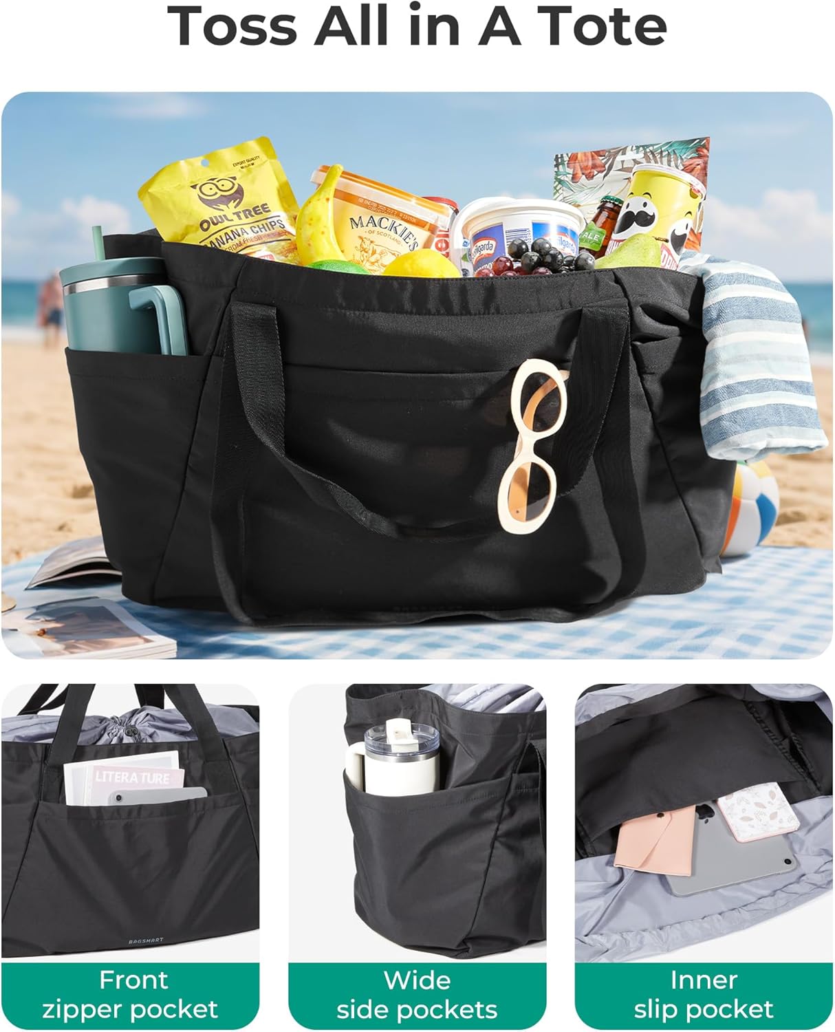 BAGSMART Reusable Grocery Bags, Large Beach Bag, Foldable Tote for Shopping Moving Holiday Travel Packing