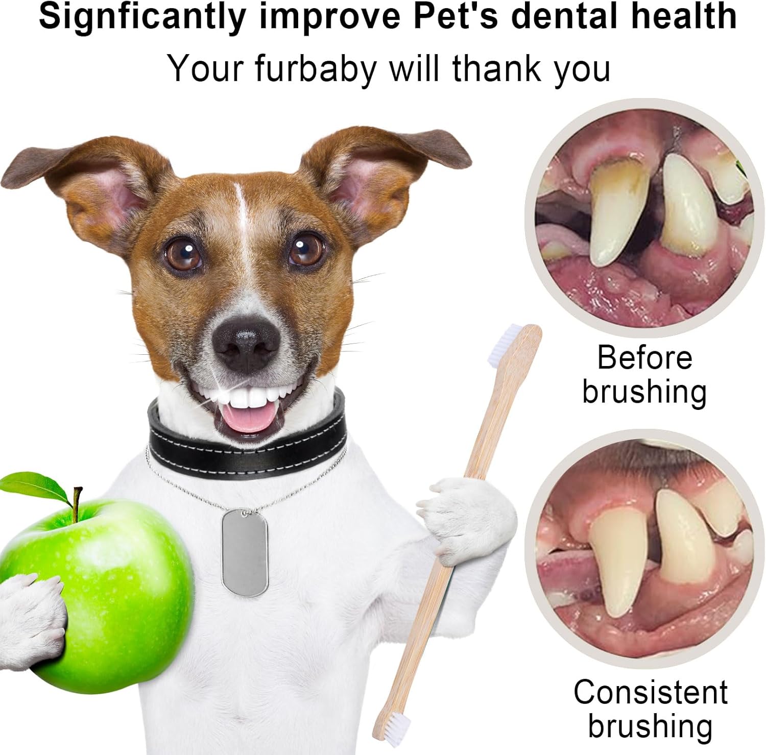 Bamboo Dog & Pet Toothbrushes, Two Sided Bamboo Toothbrush for Small and Large Dogs & Cats