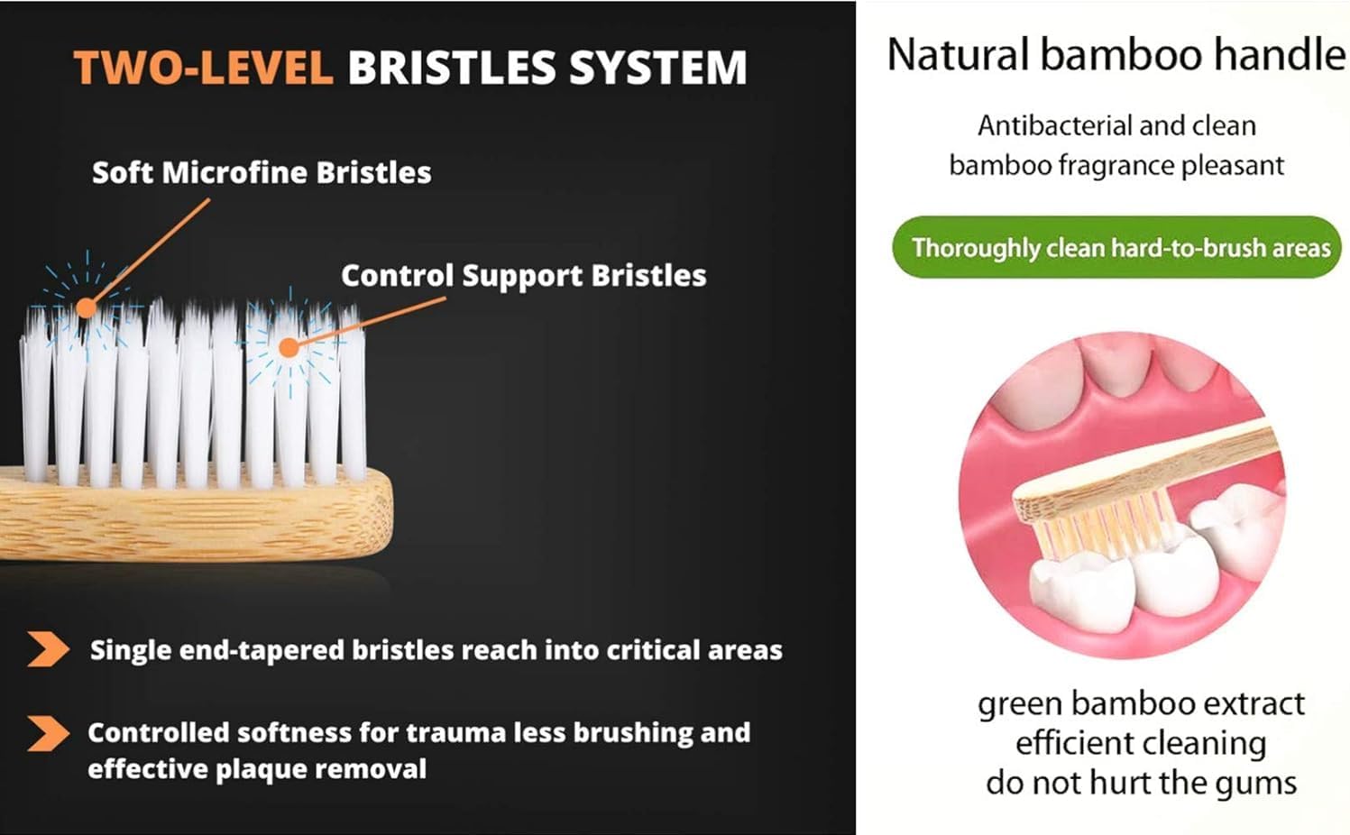 🌍 【GO GREEN】Your kids will get the same clean feeling as a plastic tooth brush but without harming the environment! If you love the environment as much as we do or more, using bamboo toothbrush is a good choice.