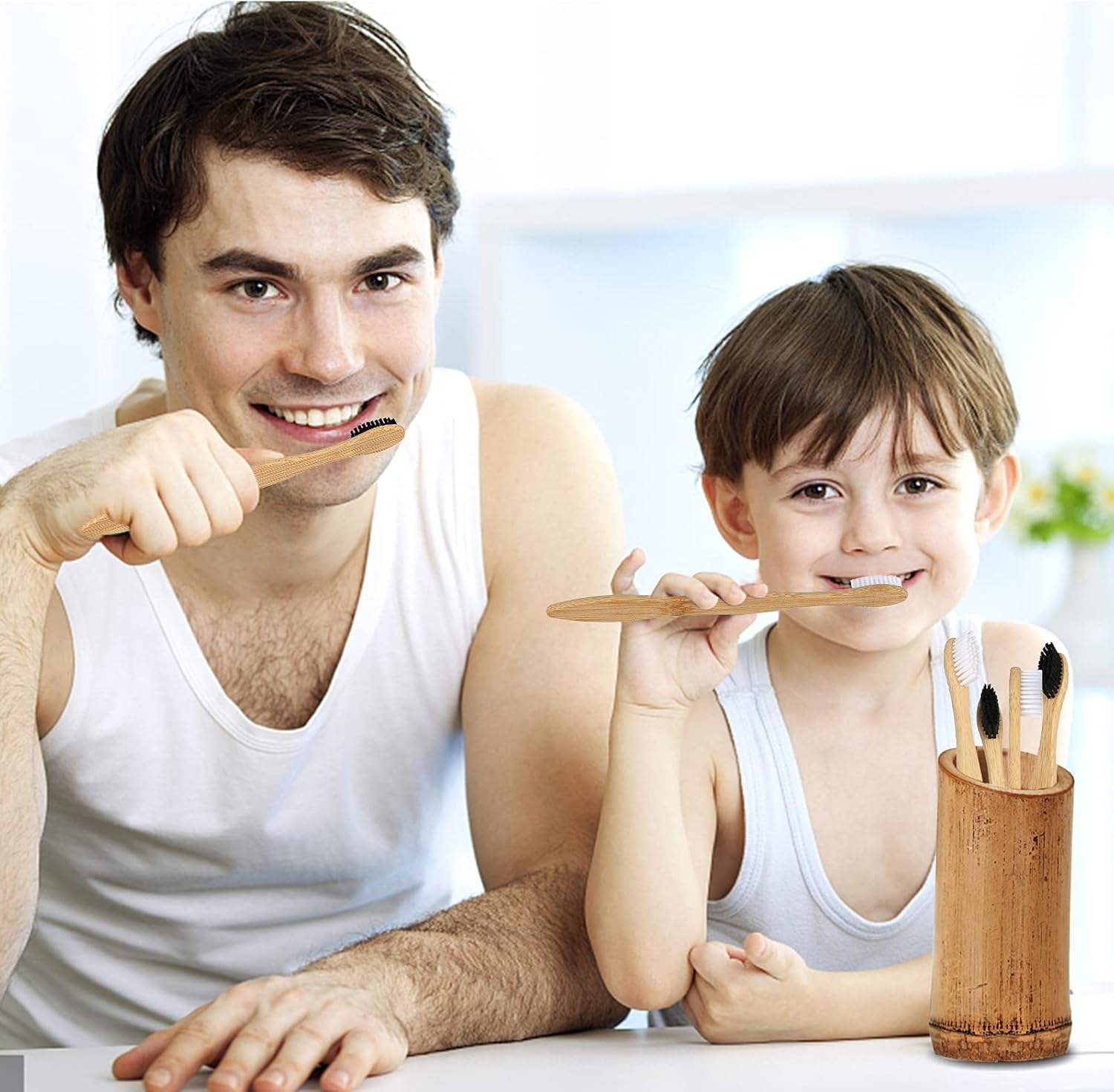 MATERIAL–Crafted from bamboo, a renewable resource, our toothbrushes ensure sustainable practices. Bamboo grows quickly, alleviating concerns about deforestation and loss of forests.