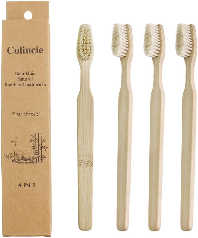 This toothbrush, 4 pcs, boar bristle and bamboo handle, biodegradable natural toothbrush.