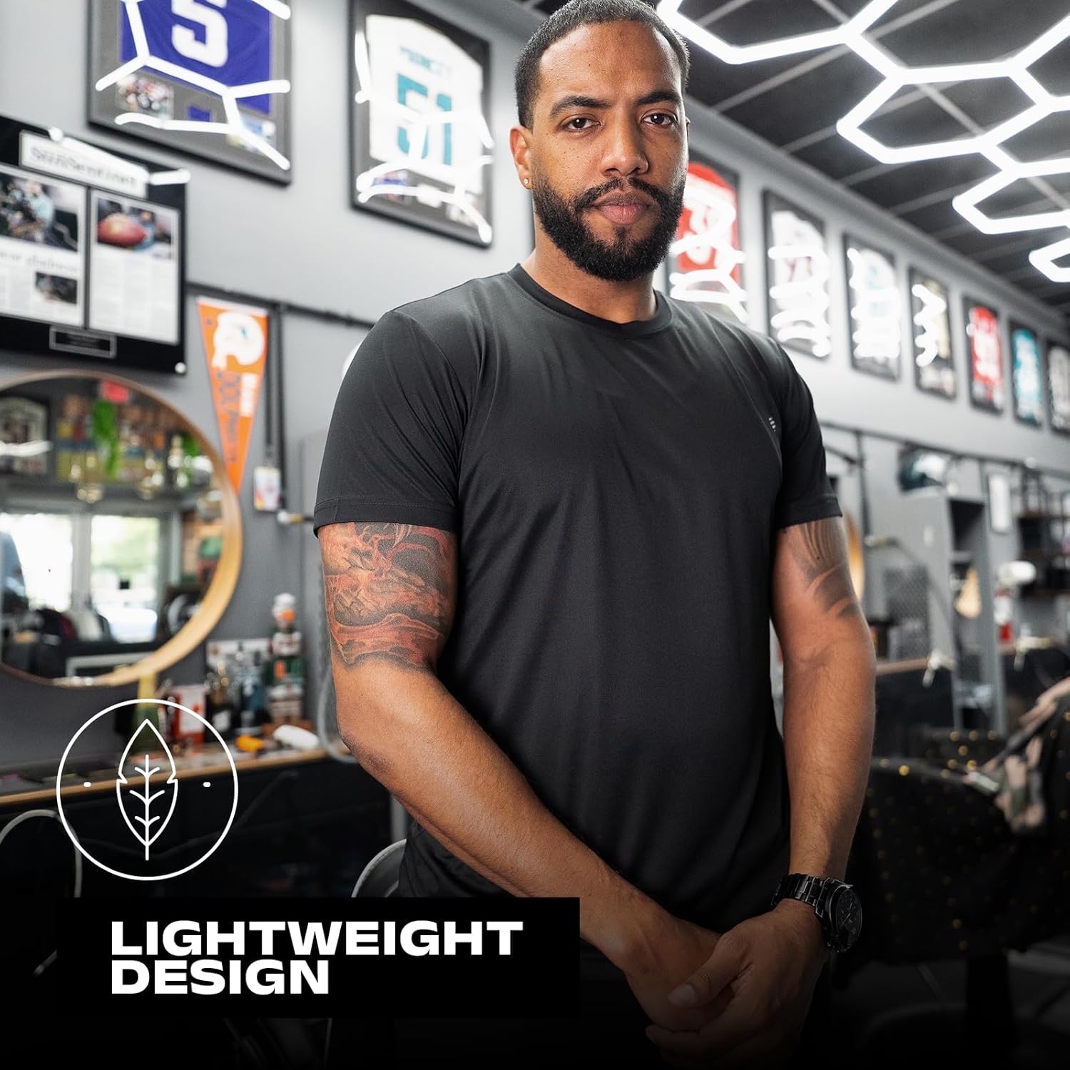 MOISTURE WICKING AND DURABLE: Our material incorporates a moisture-wicking technology that provides optimal evaporation, yet extremely durable with fine cross-woven stitching. You’ll instantly feel the difference in the excellence of our quality. The Barber Tech Tee is also water, bleach, and chemical resistant.