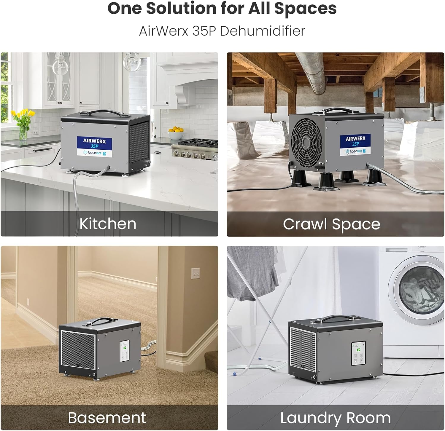 Be the first to review “BaseAire Crawlspace Dehumidifier with Pump, Energy Star Compact Dehumidifiers for Commercial and Basement with Drain Hose, 70 PPD, Auto Defrost, GLGR Technology, Up to 1000 Sq Ft”
