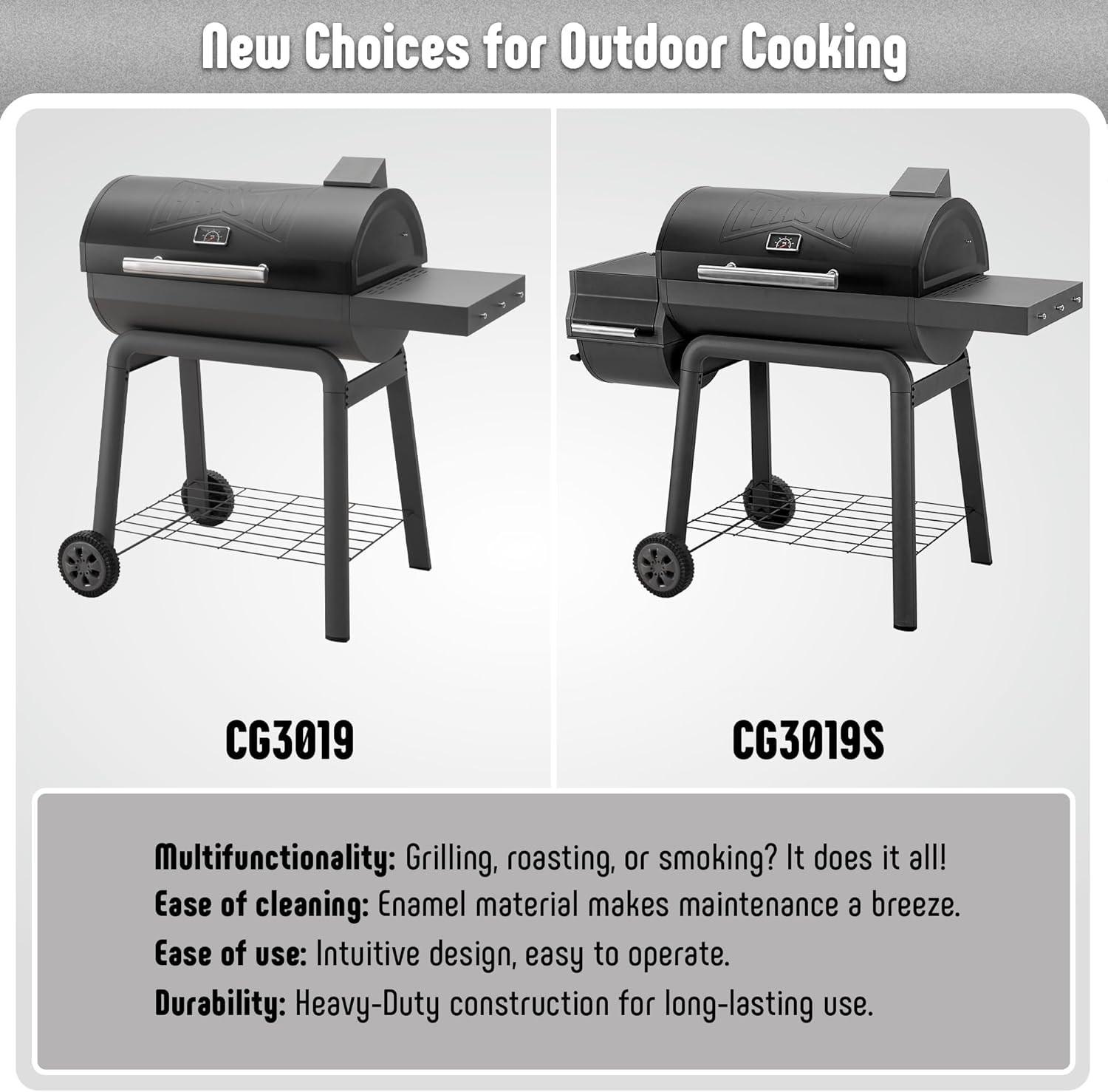 Humanization Design: The two-level charcoal pan and built-in thermometer enable precise temperature control. The top chimney & air vents regulate oxygen flow to manage combustion. The enamel charcoal pan ensures easy, efficient ash disposal