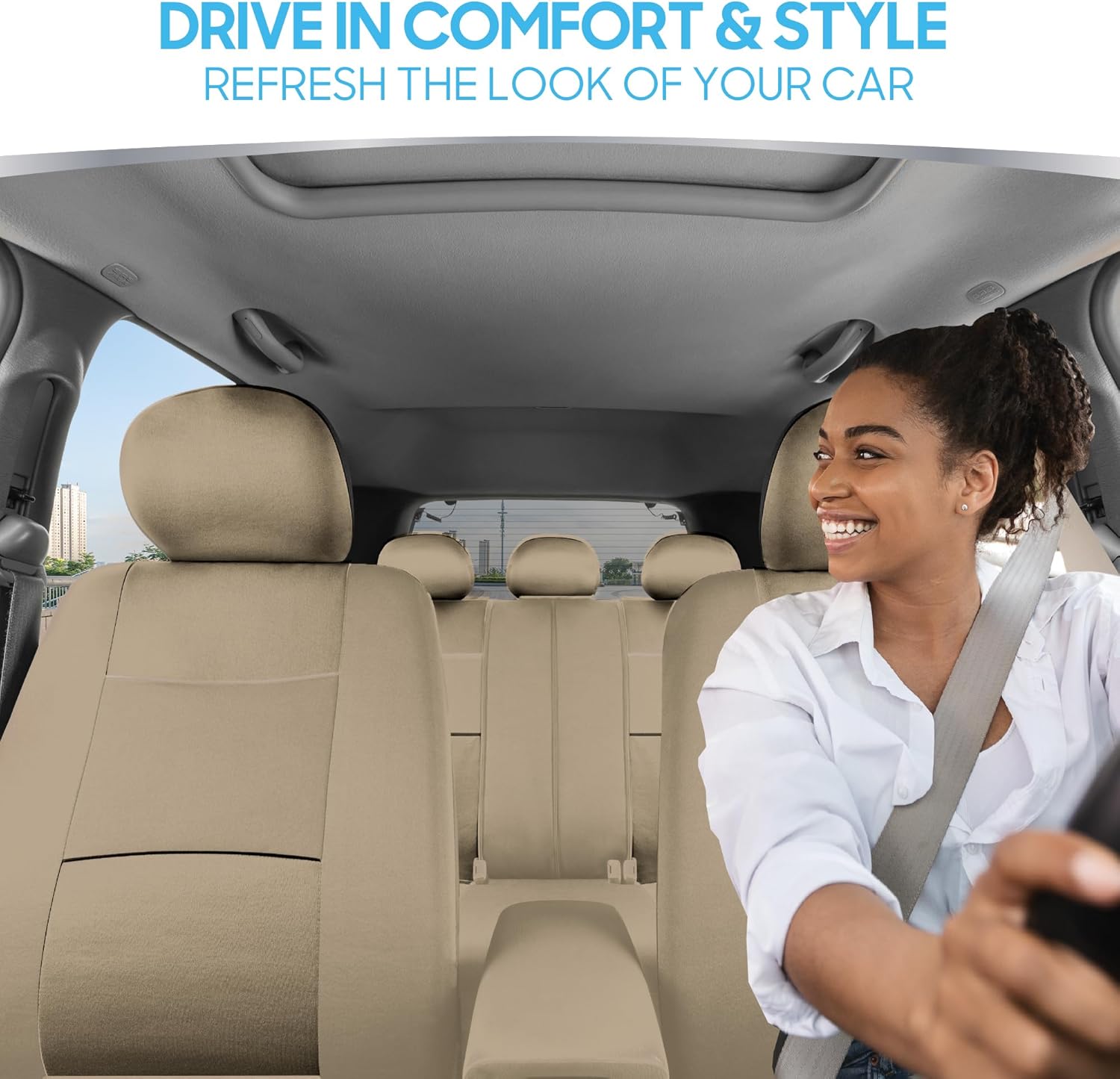 13 reviews for BDK OS-309-AB Tan Trim Black Car Seat Covers Full 9 Piece Set, Sleek & Stylish, Split Option Bench 5 Headrests Front & Rear Bench, Beige
