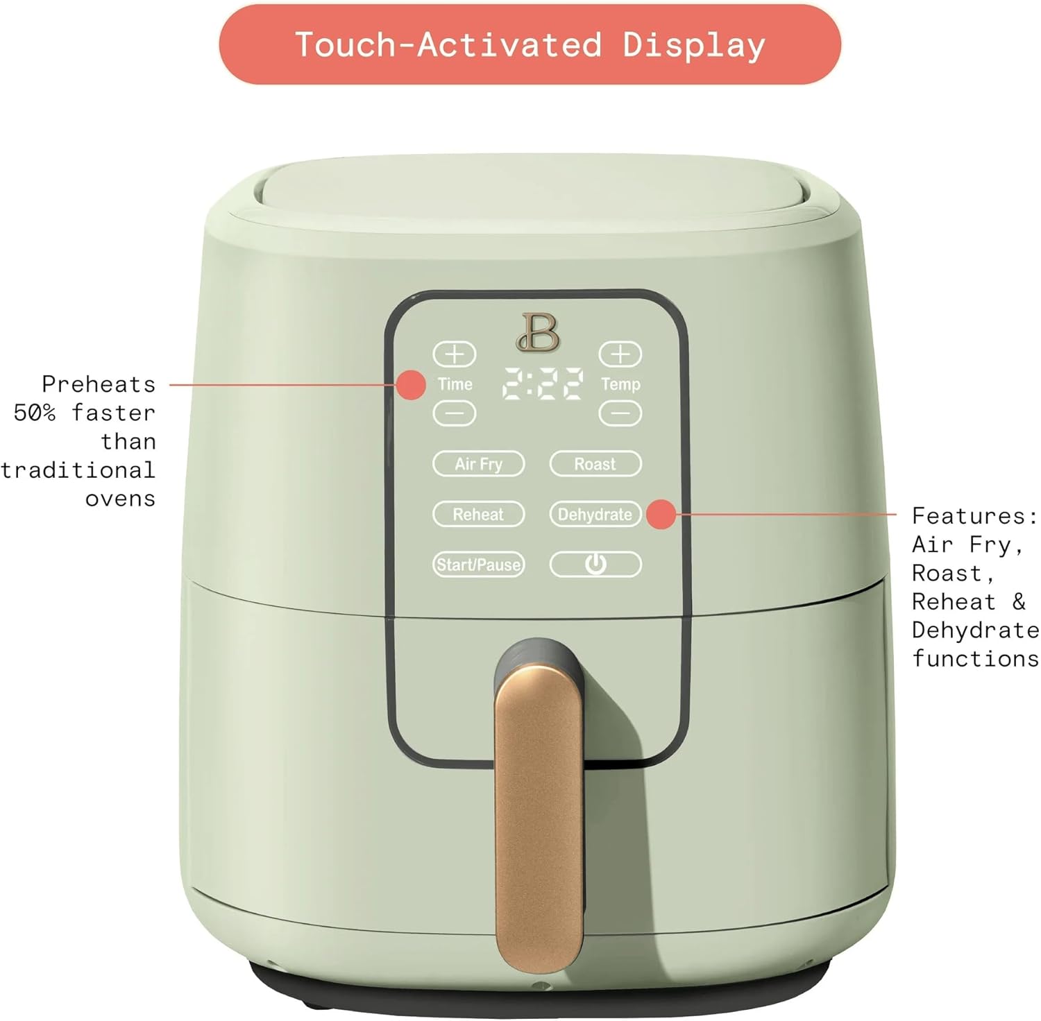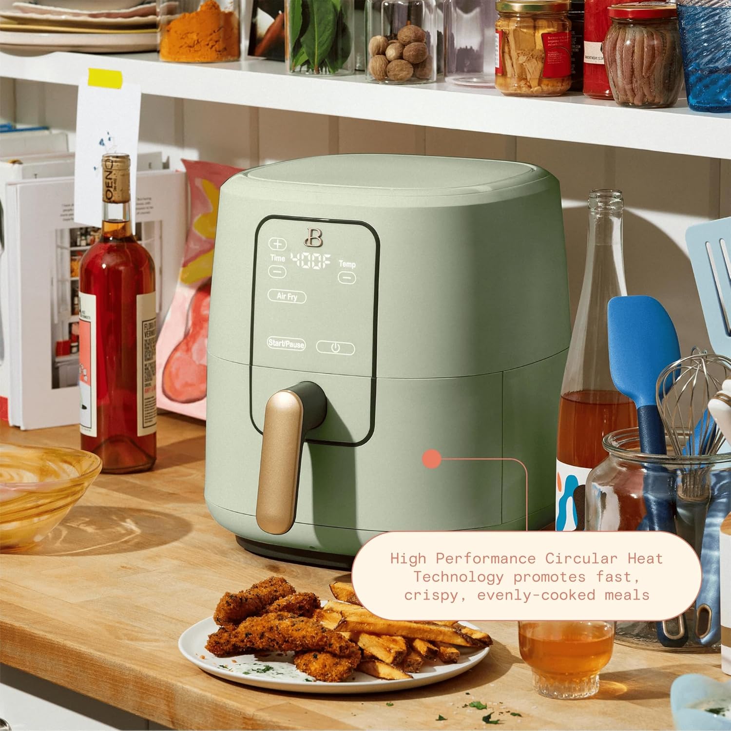 Beautiful 6-Quart Digital Air Fryer – TurboCrisp Tech Touchscreen with 1750W Power, 4 Cooking Modes (Sage Green)