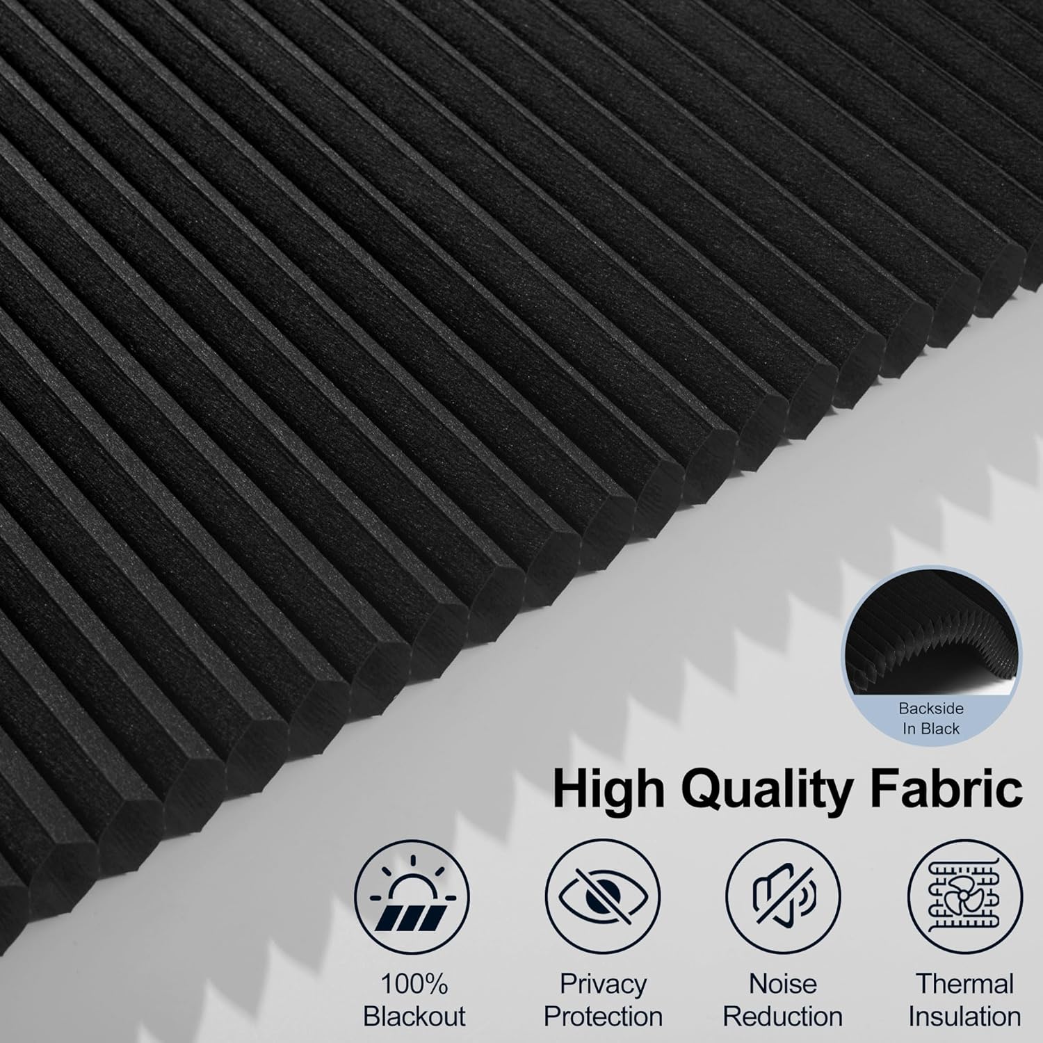 BERISSA Custom Cellular Shades Cordless, Blackout Cellular Window Blinds, Pull Down Blackout Blinds Honeycomb Indoor Windows Shades for Home Office Bedroom, Easy to Install, Black