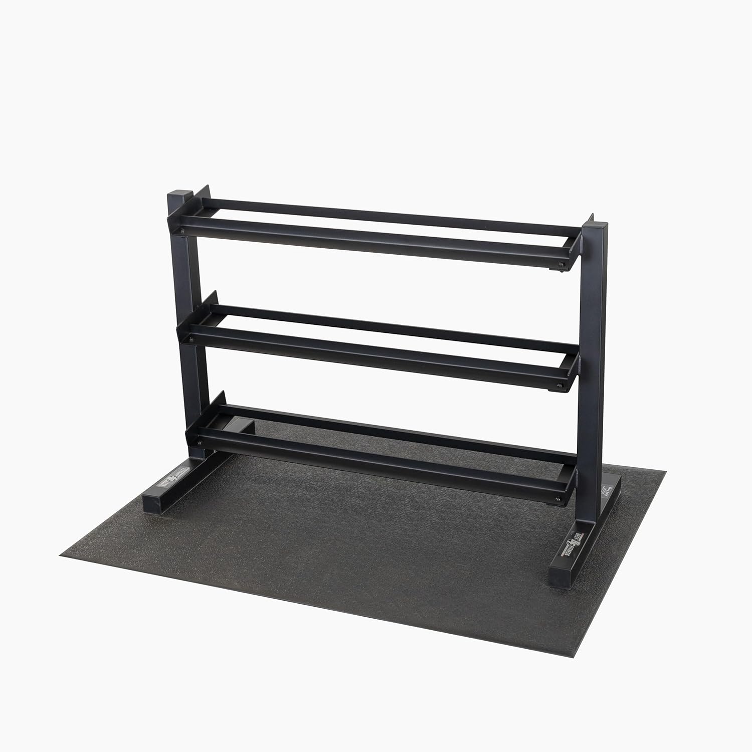 The Best Fitness BFDR10 Dumbbell Rack is a sturdy, space-efficient and stable rack designed to keep workout areas clean, organized and safe. This three-tier dumbbell rack stores 10 pairs of hex dumbbells between 5-50 lbs. Featuring a durable powder-coat finish, the BFDR10 will stay scratch-free even in heavy use.