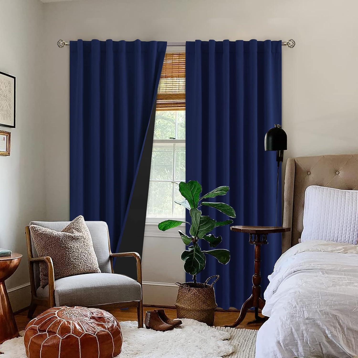 9 reviews for BGment 100% Blackout 80 Inch Curtains with Thermal Insulation Liner, Rod Pocket and Back Tab Double Layer Room Darkening Window Treatment Curtain for Living Room (52 x 80 Inch, 2 Panels, Navy Blue)
