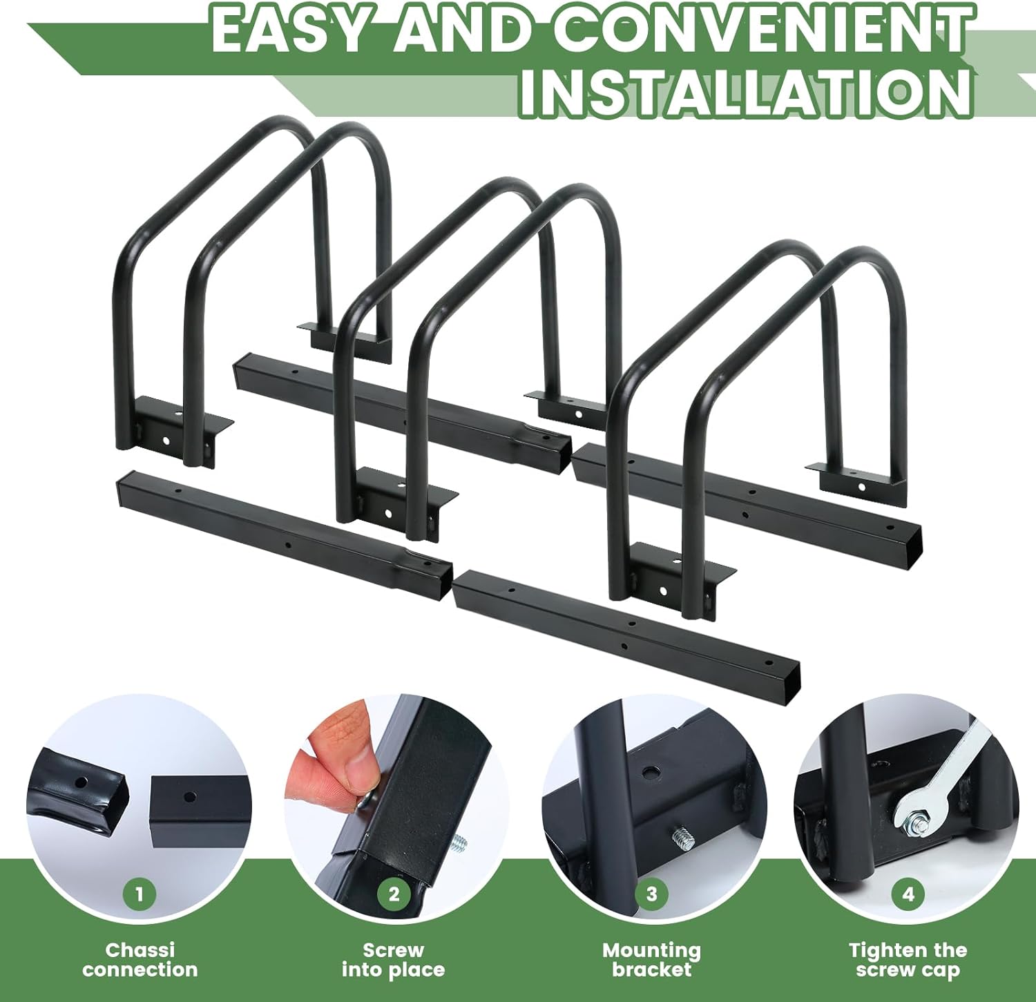 【STABLE&ANTI-THEFT】 : The racks are made of 2 curved quality steel tubes with powder coated black finish for strong support and long lasting. Our bike rack can be anchored to the ground with anchors and screws then you could lock the bike and rack for anti-theft.