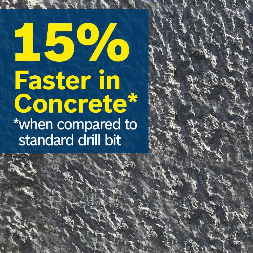 Carbide tipped for long life in tough applications. Centric tip ensures quick starts in concrete. Wear mark alerts user when tip wears beyond ANSI specification. Bit runs cooler thanks to improved flute design.