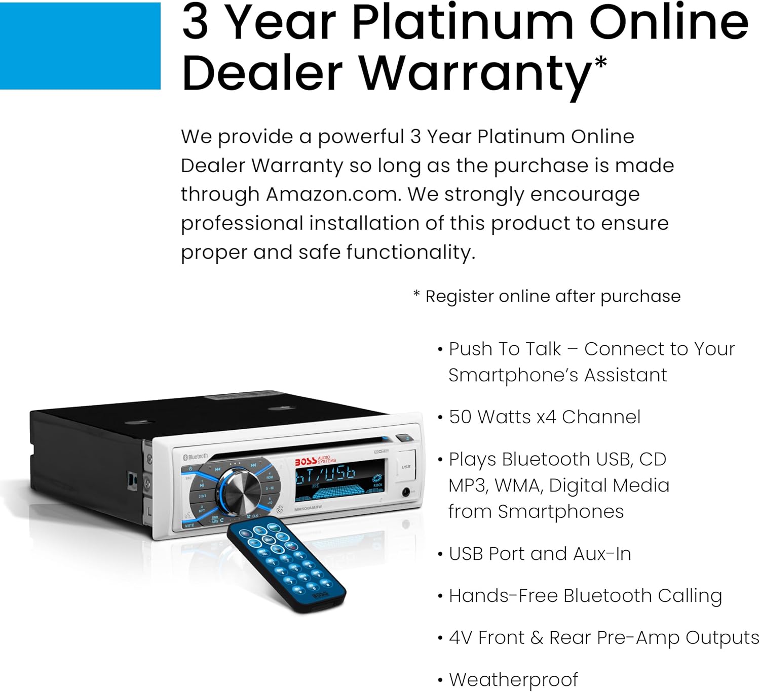 BOSS Audio Systems provides a powerful 3-year platinum online dealer warranty so long as the purchase is made through Amazon.com. We strongly encourage professional installation of this product to ensure proper and safe functionality