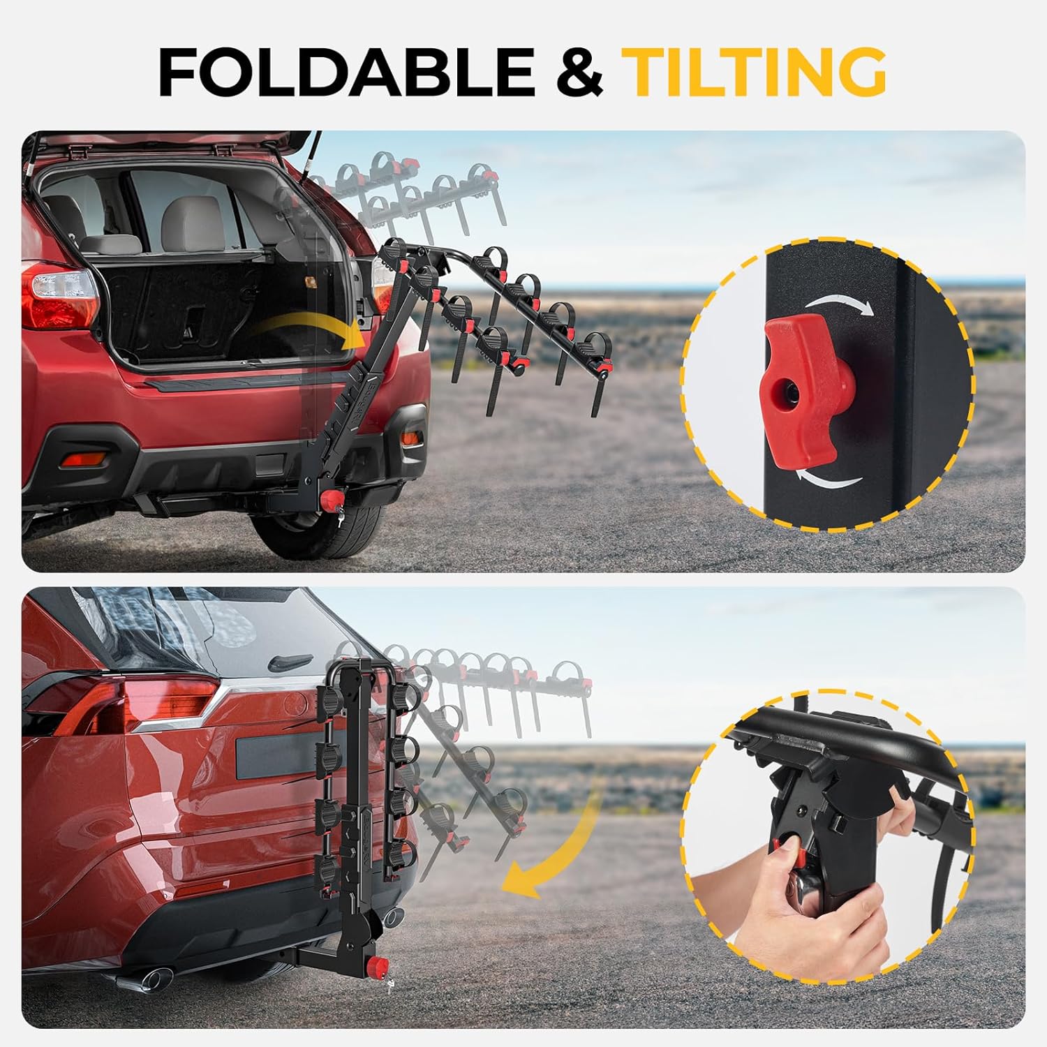 BougeRV Upgrade 2.0 Hitch Bike Rack with Dual Lock for SUV Truck, 165LB Capacity 2/3/4 Bikes Hitch Bike Carrier Rack with 2” Hitch Receiver, Easy Assembly, Tilting & Foldable Bike Rack Hitch