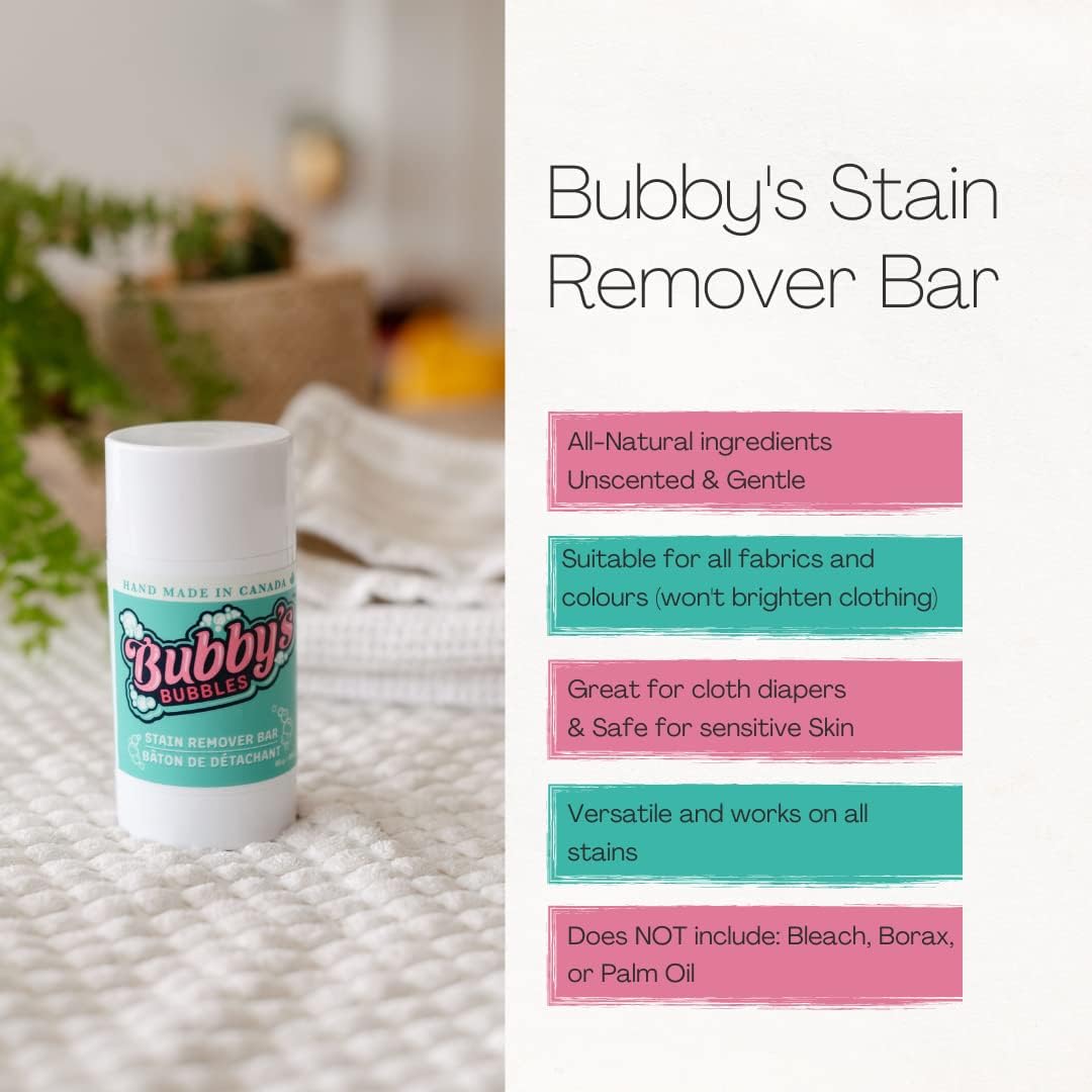 ECO-FRIENDLY: Bubby’s Bubbles stain bar is bleach & borax free, which keeps our planet and your clothes squeaky clean!