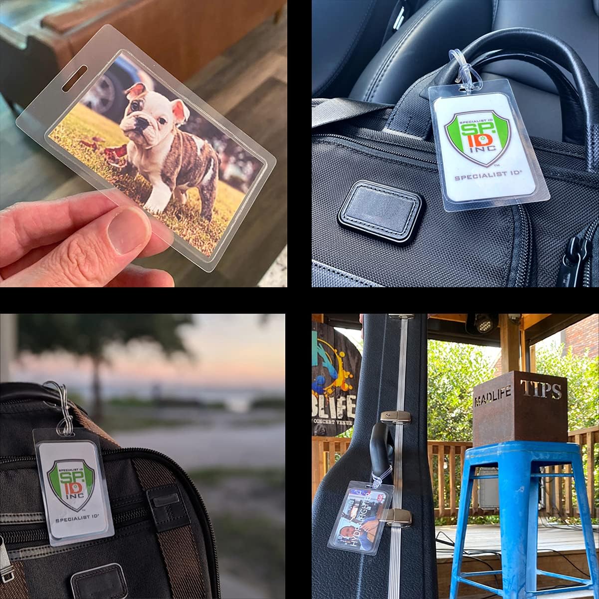 SLOT HOLE FITS LUGGAGE LOOP (INCLUDED) & I’D BADGE CLIPS – In Bulk These are Great For Small Business ID Badges. Find a Template Online, Add a Picture, and Voila You Have a Laminated Access Card for Your Employees. The Slot Hole Works with Any Lanyard, Badge Clip, Badge Reel, or ID Holder