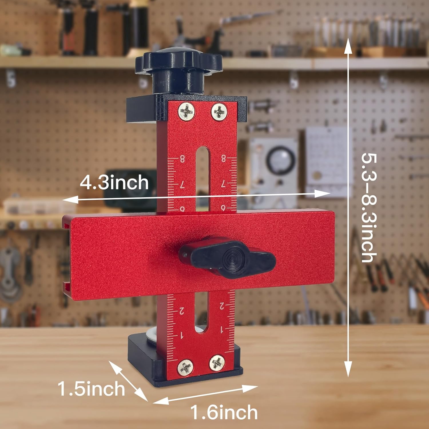 Cabinet Door Installation Positioner with Adjustable Height 0-75mm, Aluminum Alloy Mounting Jig & Dual-Level Tool Kit (Red/Black)