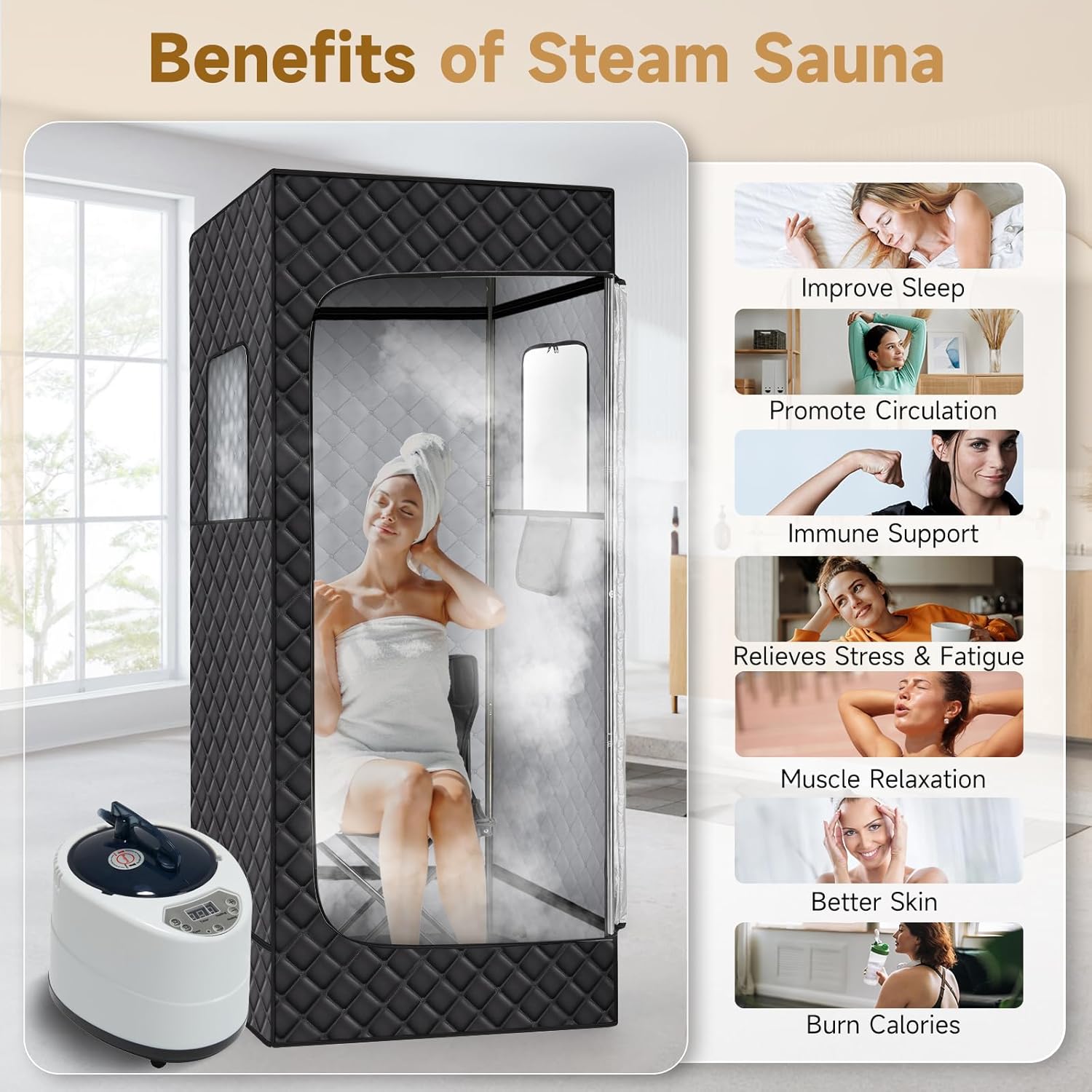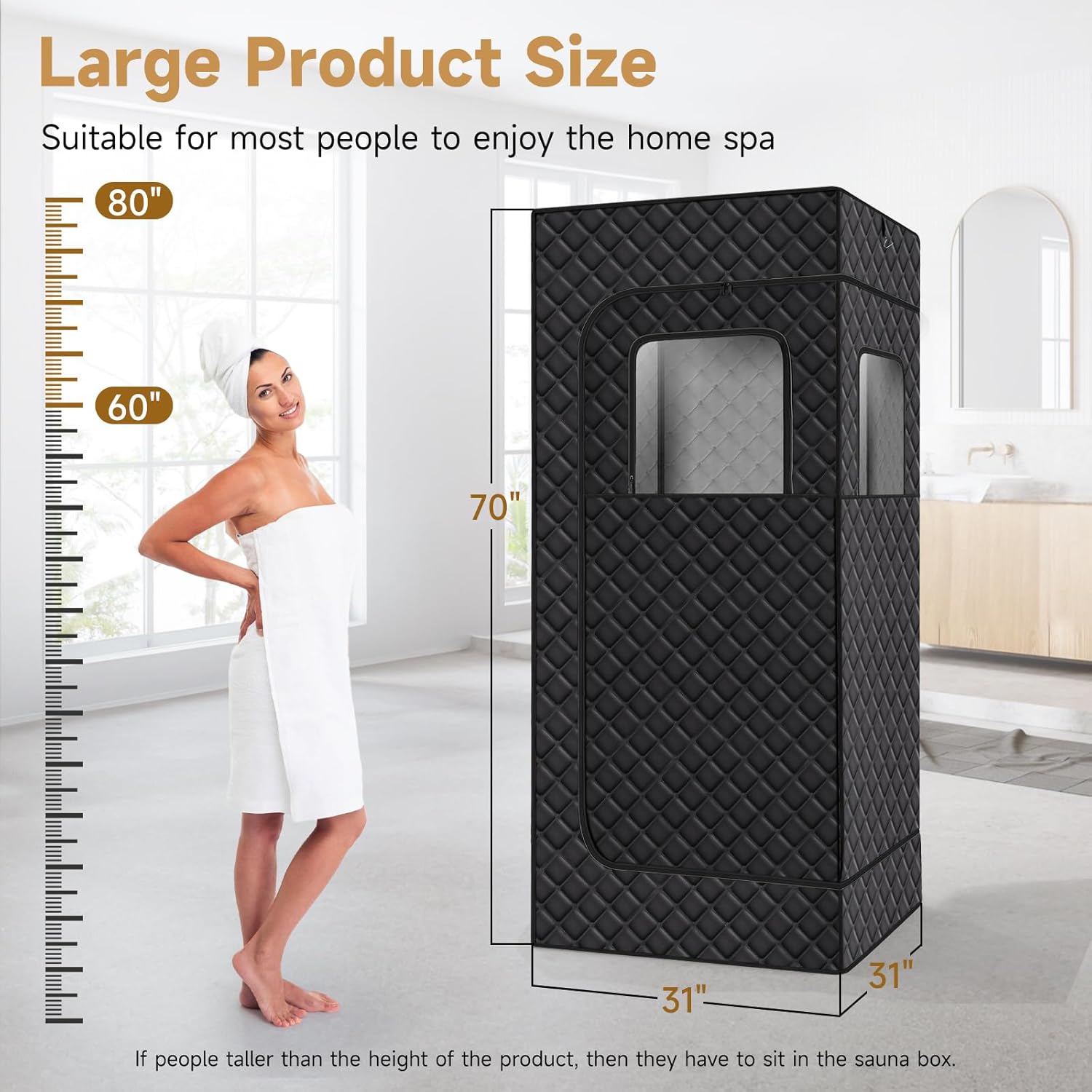 Safety First & Easy Assembly: The home steam sauna features an advanced safety design with anti-dry burning and explosion-proof functions. Enjoy peace of mind as you immerse yourself in the soothing steam, knowing that your well-being is protected. Easy to set up and store for about 3-5 minutes