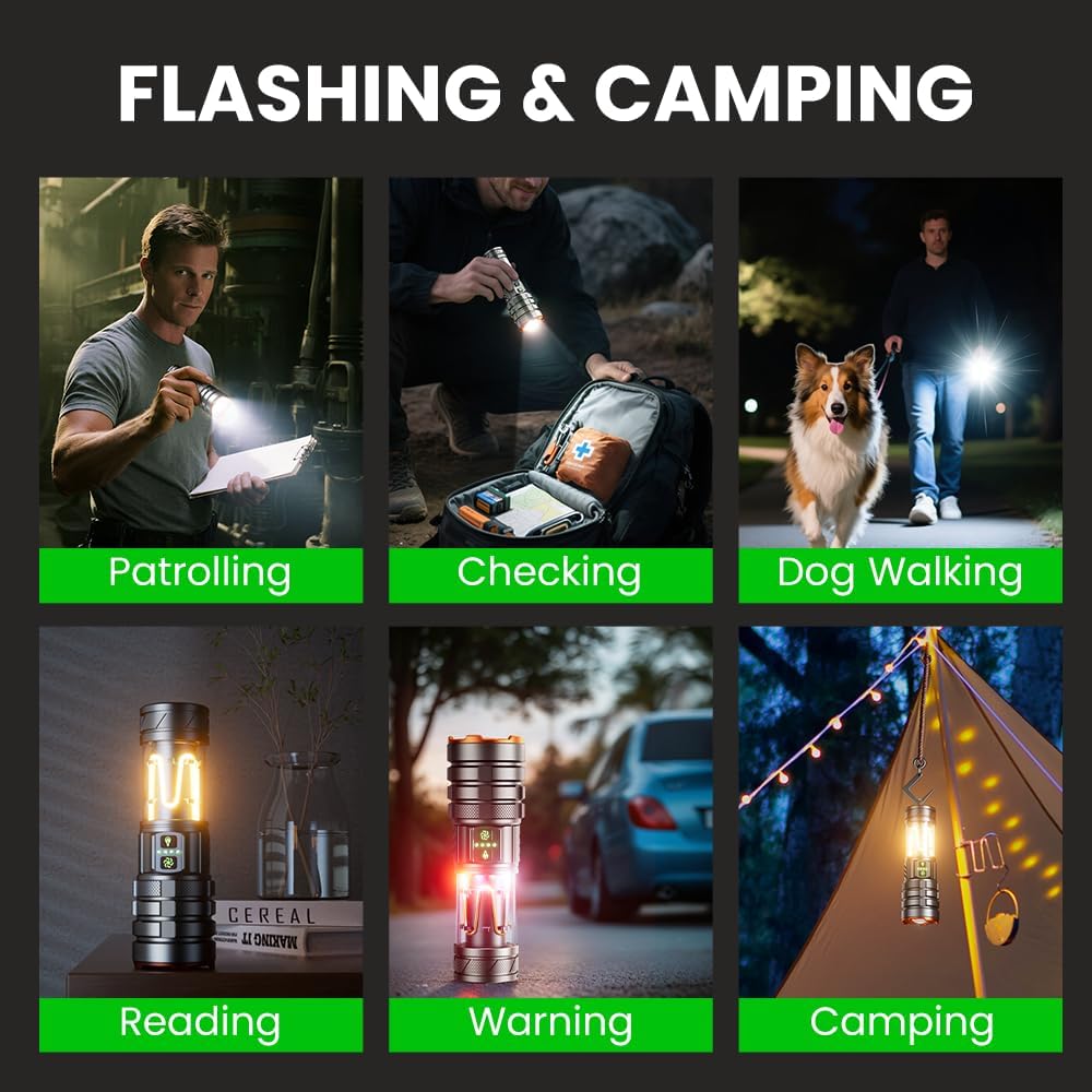 Camping Flashlights High Lumens Rechargeable Flashlight,11 Modes|5000mAh|Waterproof|Powerful Zoomable Tactical LED Flashlights for Camping,Travel,Outdoor,Emergency,Hiking,Automotive Work