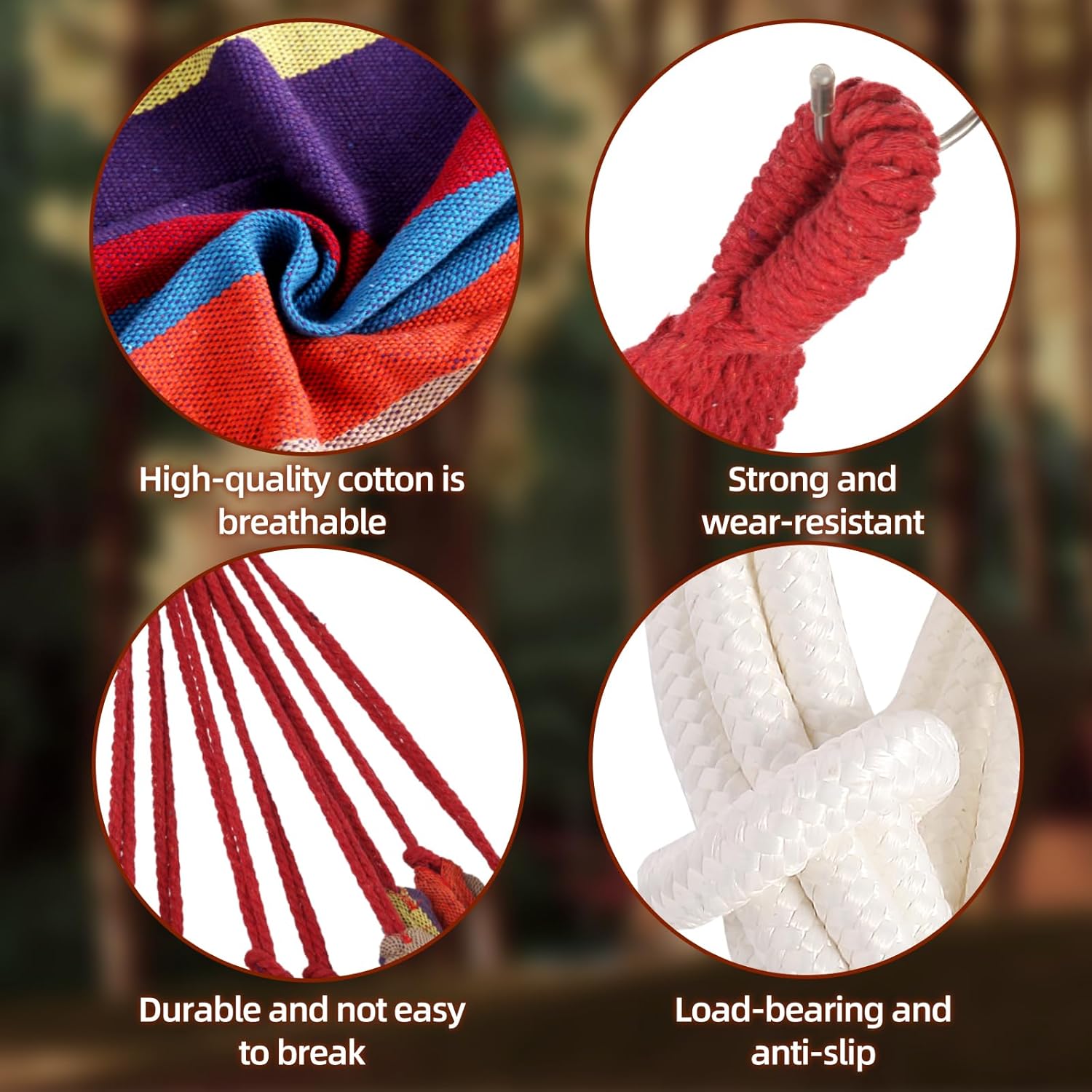 Anti rollover: This hammock is 1.5 meters wide and can fully accommodate one person without collapsing outward. Whether you are lying down or sitting, the hammock can provide sufficient support and enjoy a peaceful and comfortable life.