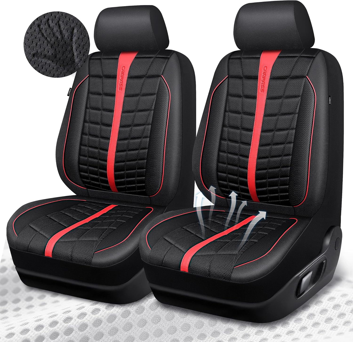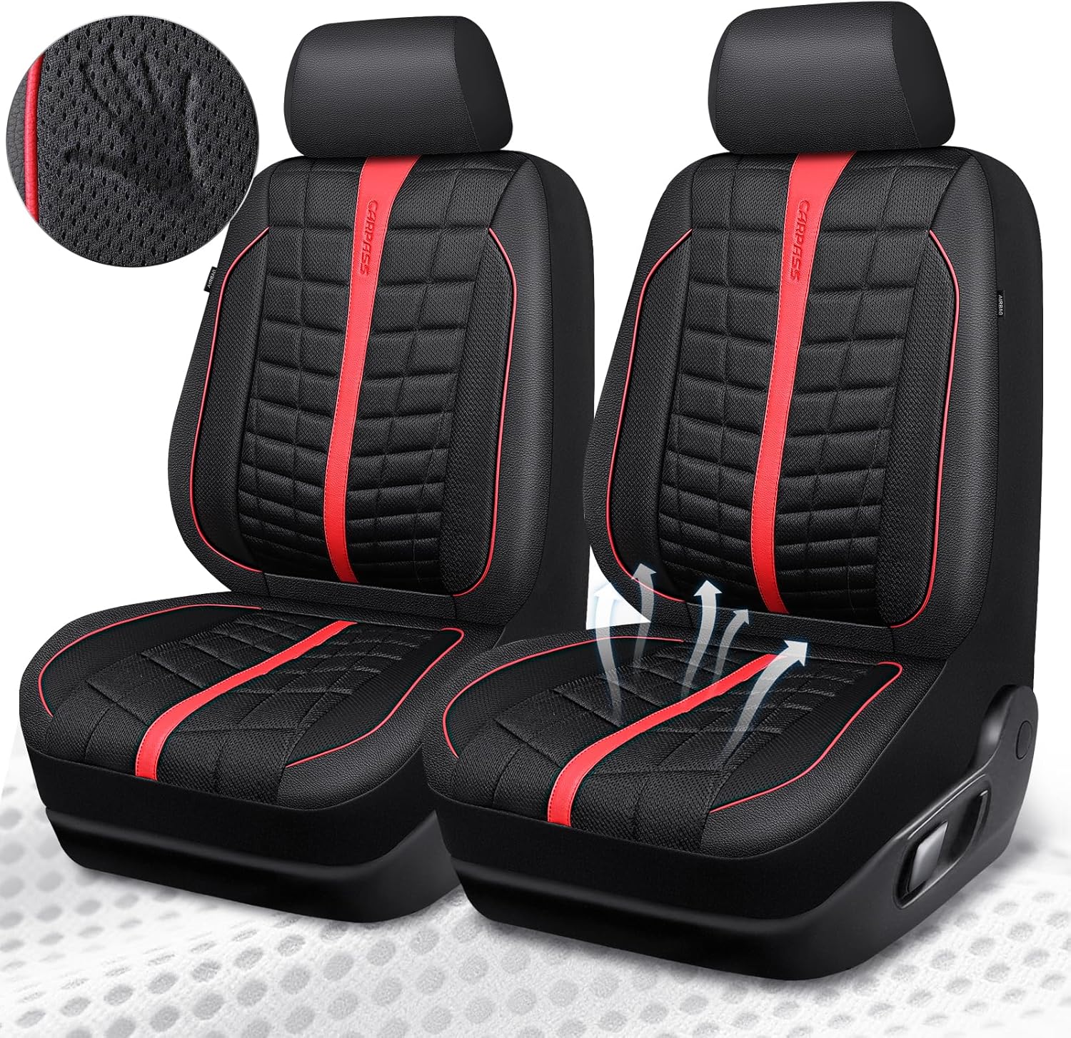 CAR PASS 3D Air Mesh Seat Covers for Car, Leather Car Seat Cover Front Seats,Breathable Foam Premium Leather Mesh Front Seat Covers Universal Fit for Cars Sedans Trucks Vans SUVs, Black Red