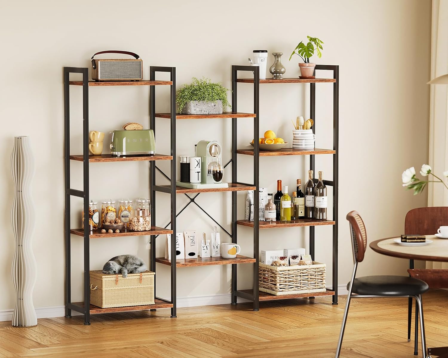 【Spacious Triple Design – Organize More, Stress Less!】Whether it’s books, photo albums, decorative accents, or your favorite potted plants, this book shelf keeps everything perfectly organized and within reach. Transform cluttered spaces into neat, stylish displays with 11 open shelves designed for maximum storage! Say goodbye to mess—hello to effortless organization!