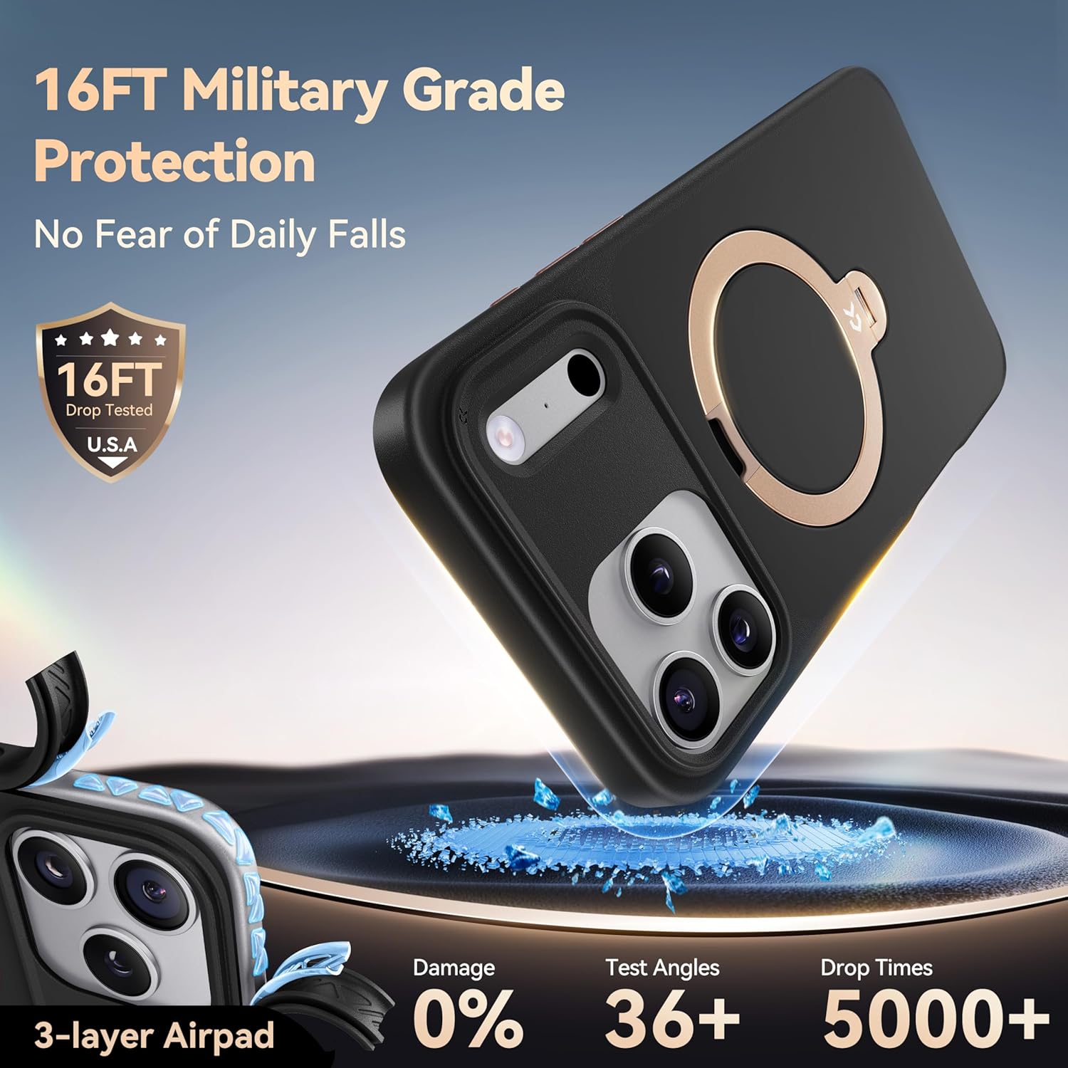 CASEKOO Midnight Black Designed for iPhone 17 Pro Case with Spin Magnetic Stand [16FT Military Protection] [Non-Slip Edge] [Fit for MagSafe] Shockproof for iPhone 17 Pro case with Stand 6.3”