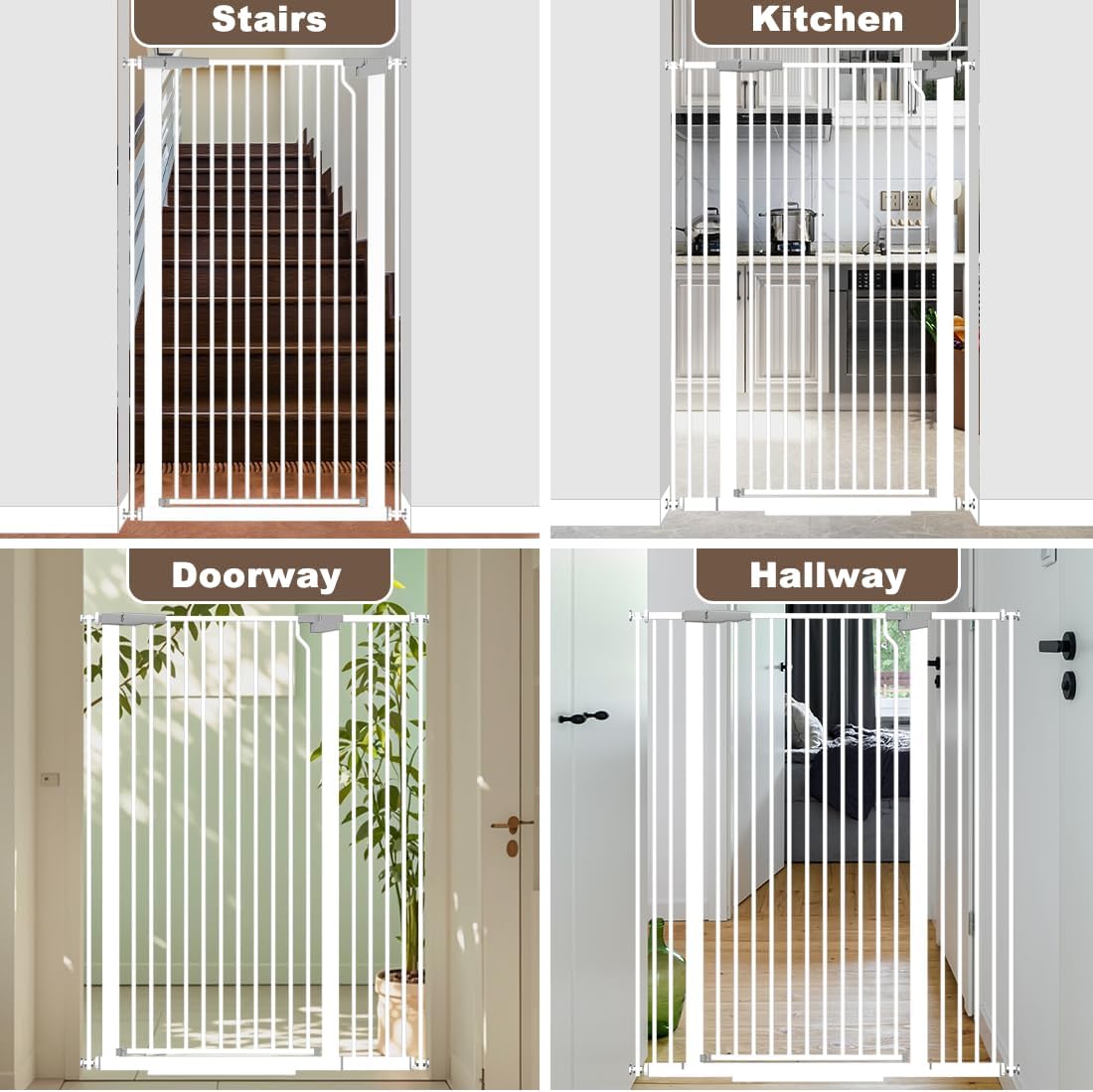 【51.18″ Extra Tall Security】 Prevent climbing & jumping with this 51.18-inch tall baby gate. The narrow gaps create a secure cat-proof barrier, stopping pets and kids from squeezing through or getting stuck.