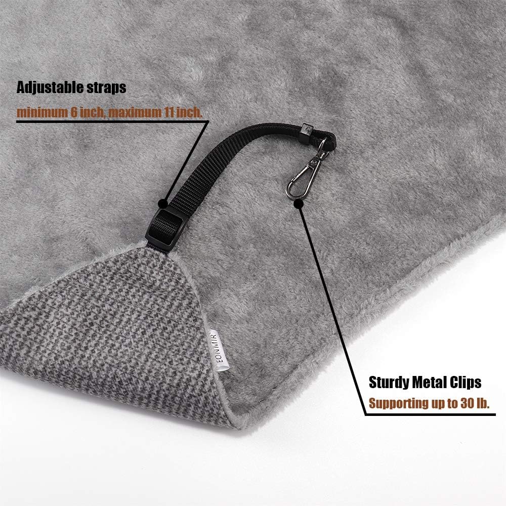 Cat Hammock for Cage, Soft Pet Bed Fit Ferret, Kitten, Puppy, Small Dog, Adjustable-Strap/Load Capacity 30lb (Gray)