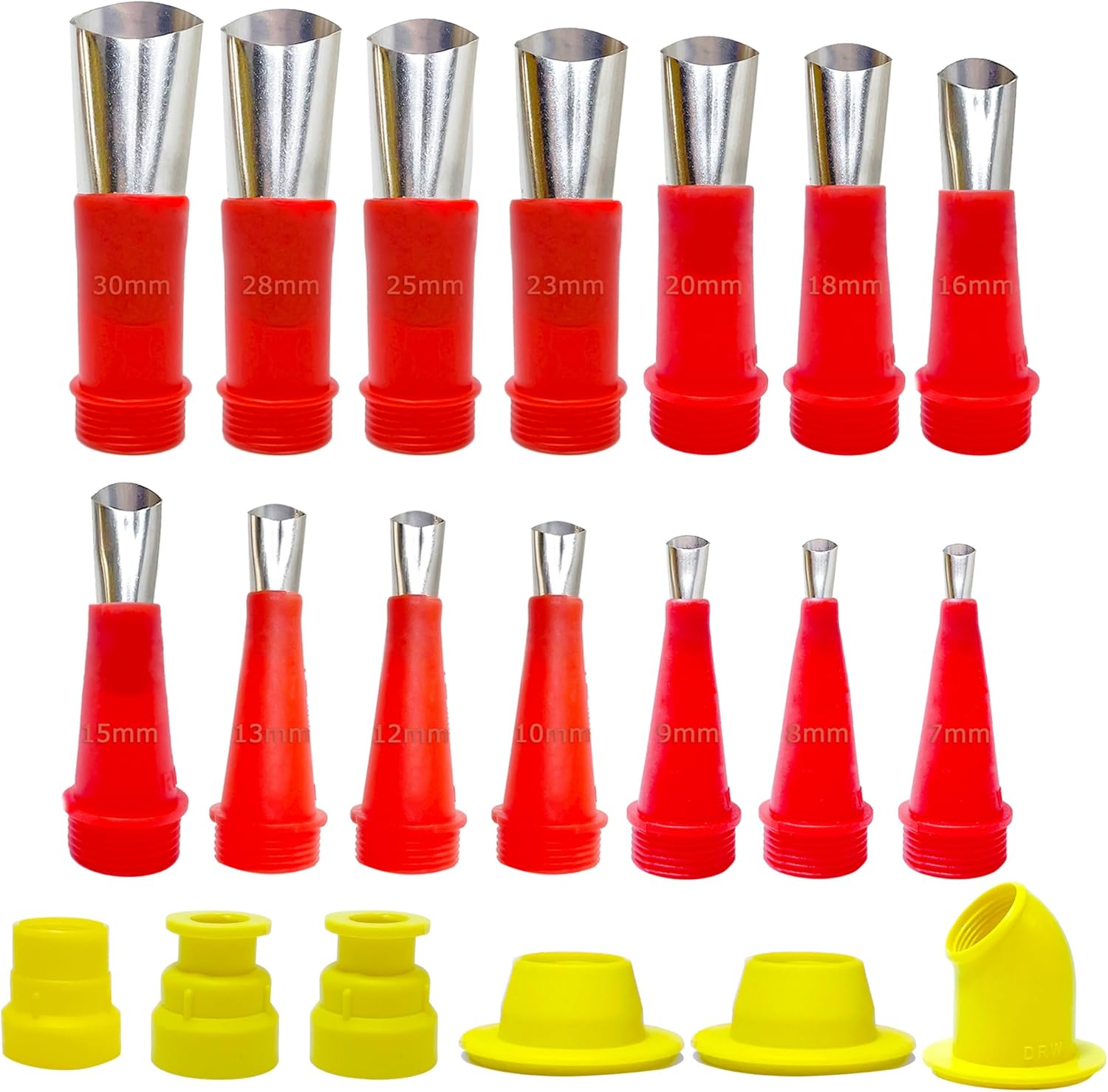 14 sizes of glue heads and 6pcs brackets.It can meet your daily needs.The ideal choice for home use (toilets, bathroom ,kitchens, living rooms,siding, sinks,and tubs with latex, silicone, or acrylic caulk. ) or outdoor decoration (walls, tank,windows, roofs and so on).