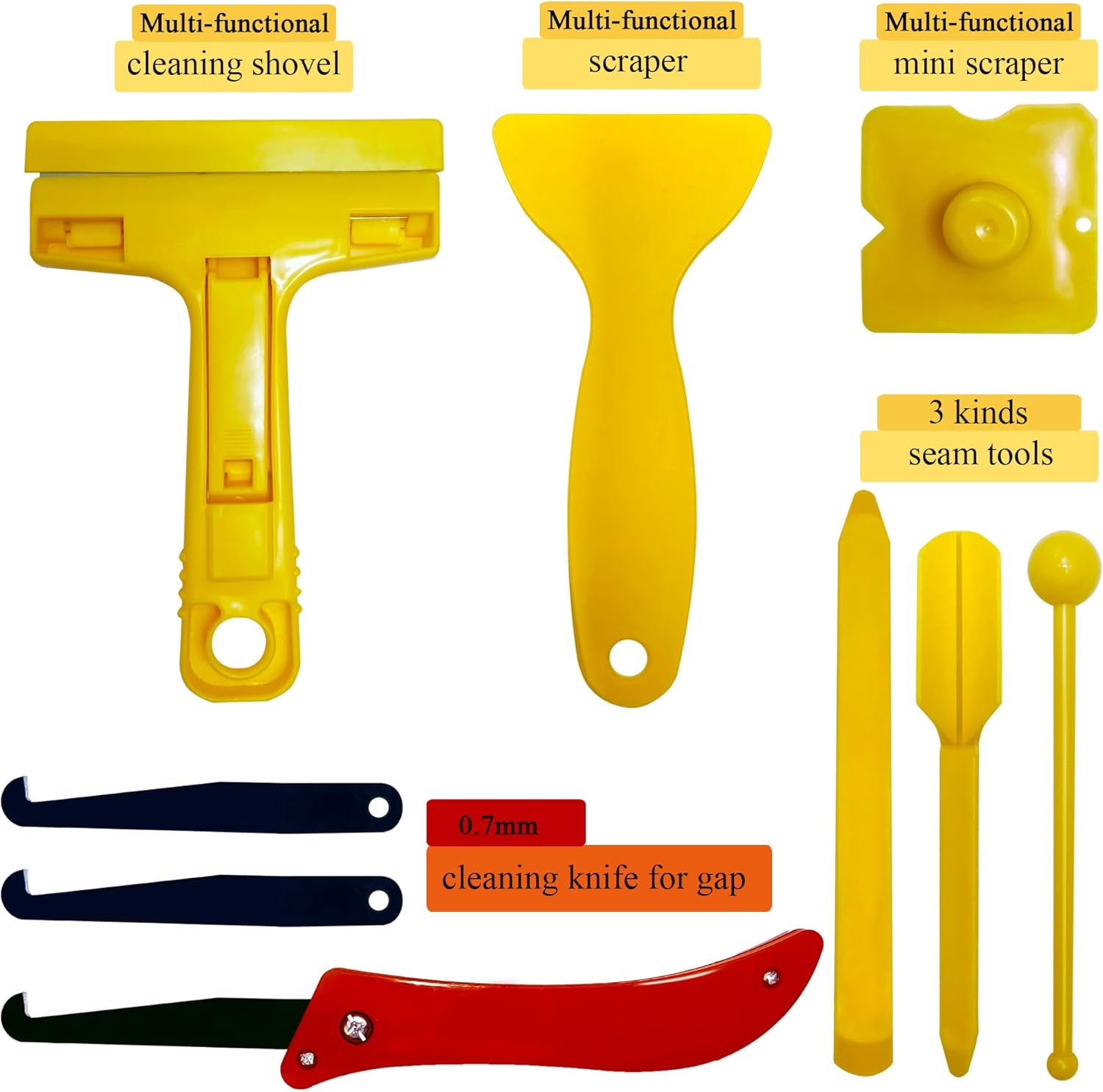 【Multi-function Caulking Scrapers】 With replaceable 5 silicone pads(3R,6R,10R,13R,17R).It can help you repair the gap and clean the residual glue,improve the agglutinating quality and the aesthetic sense of surface. suitable for most silicone jobs, any edge, corner, joint.These caulking tools specifically designed to make the tough task of caulk removal easy and fast without damaging surfaces. Ideal for use in showers, windows, siding, sinks, and tubs with latex, silicone, or acrylic caulk.