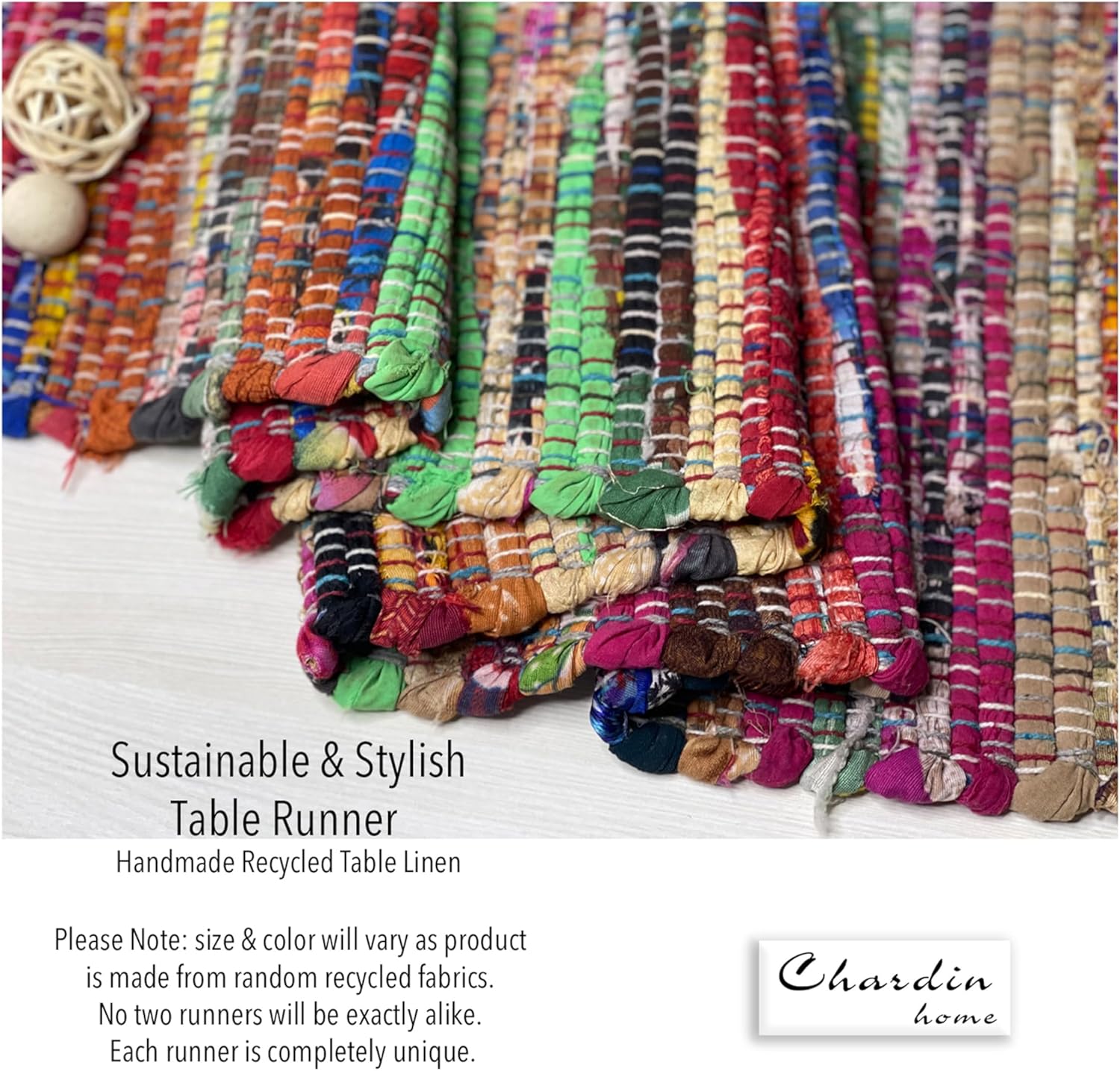 Chardin home Eco Friendly Rainbow Multi Chindi Colorful Table Runner. Size: 13”x36”, Multi Color