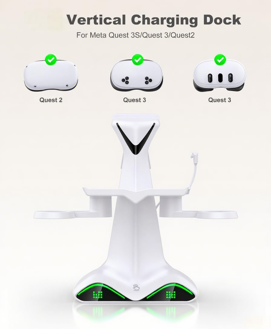 I recently got my Meta Quest 3S and wanted a good charger. I was looking for an all in one unit and the NinxGloy Charging Dock is a great solution.The unit requires some assembly but it is simple and only takes a few minutes. Once assembled, it will hold everything together in one place, a nice change from having things laying in different places. It feels sturdy with no wiggle at all. The unit will charge both the controllers and the headset at the same time and the intelligent charging means that it won’t burn anything out or keep it charging once it’s at 100% which greatly extends the battery life. I don’t worry about charging it overnight anymore. There are multiple different RGB lighting choices but I always keep them off since I’m not a fan of that kind of stuff. It’s a nice option for younger gamers though.Now, the unit isn’t perfect. You will have to remove the batteries from the handheld controllers to charge them. You will also have to charge the batteries in waves since it will only hold two at a time and not four. It’s an odd choice since you need two for EACH controller. We have a charger that will do eight batteries at a time and have plenty of spares so, for us, it isn’t an issue. Just something to be aware of.If you are looking for an all in one charging system for your Quest, this is a nice option, while not perfect. It keeps everything in one place and let’s you charge things together. While the two battery slot is a bit disappointing, it isn’t a deal breaker. It’s a great charger if you have multiple models too since it will handle the 2, 3 and 3s. At $70 it is a bit pricey but, at the time of this review it is on sale for $54 with an additional 10% coupon making it a much better value.