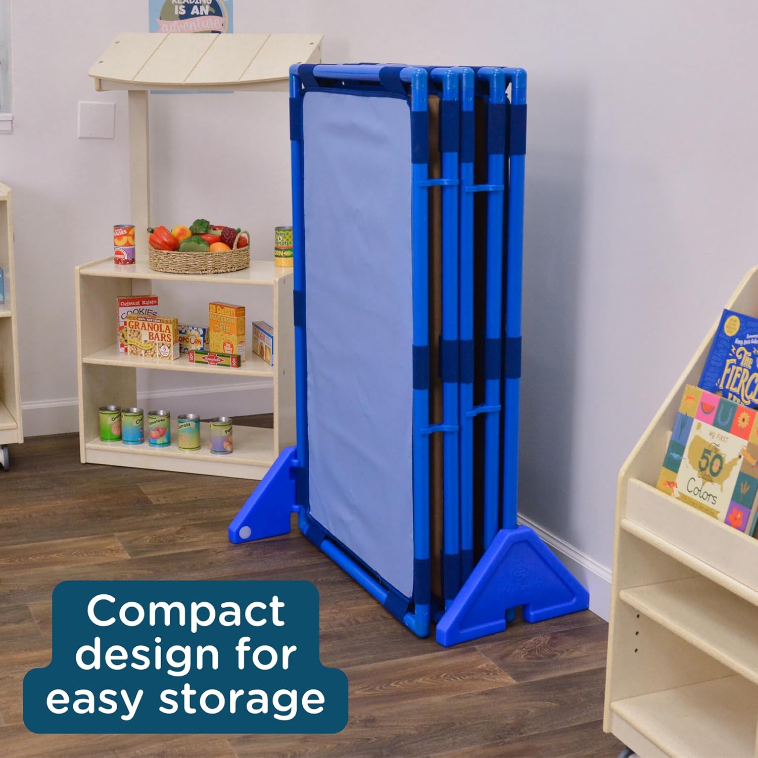 Customize your kids’ learning space with the Children’s Factory Big Screen PlayPanel Room Divider Set. These fun and colorful room dividers can help separate larger classrooms into smaller spaces. The room divider panel is also lightweight and easy to maneuver, so teachers and caregivers can shift things around quickly in case of distraction. The PlayPanel privacy screen can attach to other PlayPanels either horizontally or vertically, and can become freestanding with the three included PlayPanel support legs. Plus, the muted, Welcoming Woodland-colored vinyl surface is incredibly easy to clean! This versatile room divider screen deserves a spot on your list of classroom essentials this and every school year.