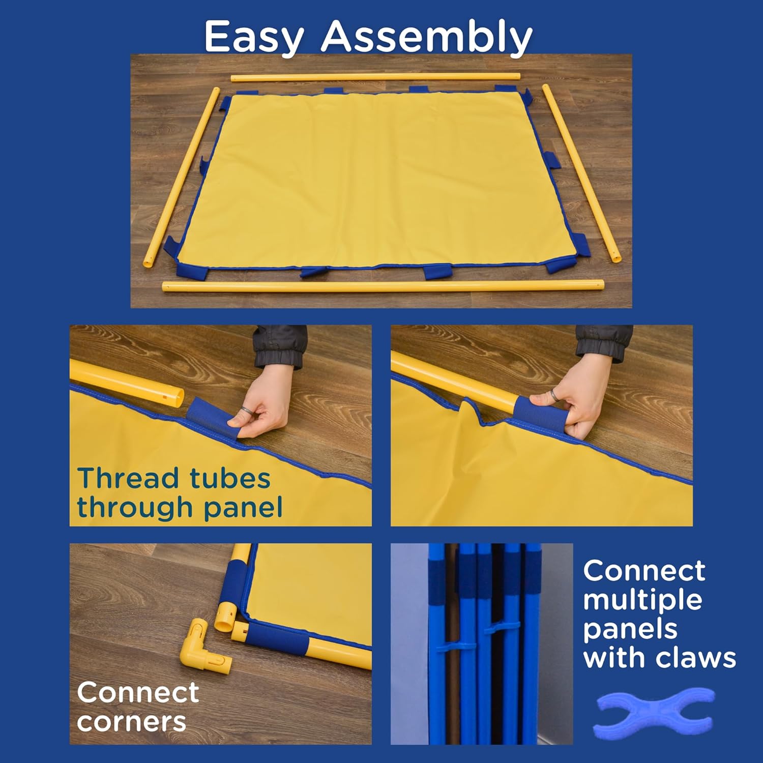 CUSTOMIZEABLE DESIGN: Attach PlayPanel privacy screens of any size to each other with the included double claw clips in either vertical or horizontal orientations to customize the room dividers to your needs.
